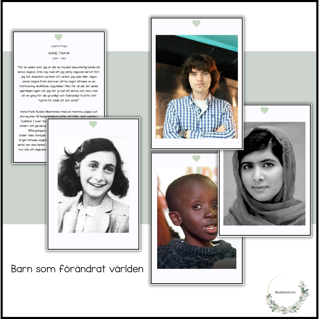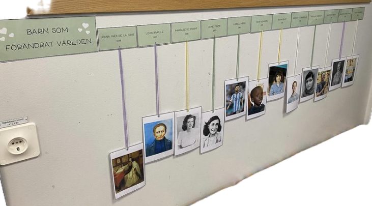 Jag har hängt upp korten för att locka eleverna till att läsa om barnen och få en förkunskap och ett intresse innan vi läser och pratar gemensamt i klassrummet.
