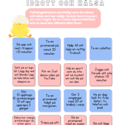 I det här paketet finns 3 olika bingobrickor. En läsbingo, en mattebingo samt en för idrott och hälsa. Det medföljer även ett examplar av varje som inte har någon färgad bakgrund.