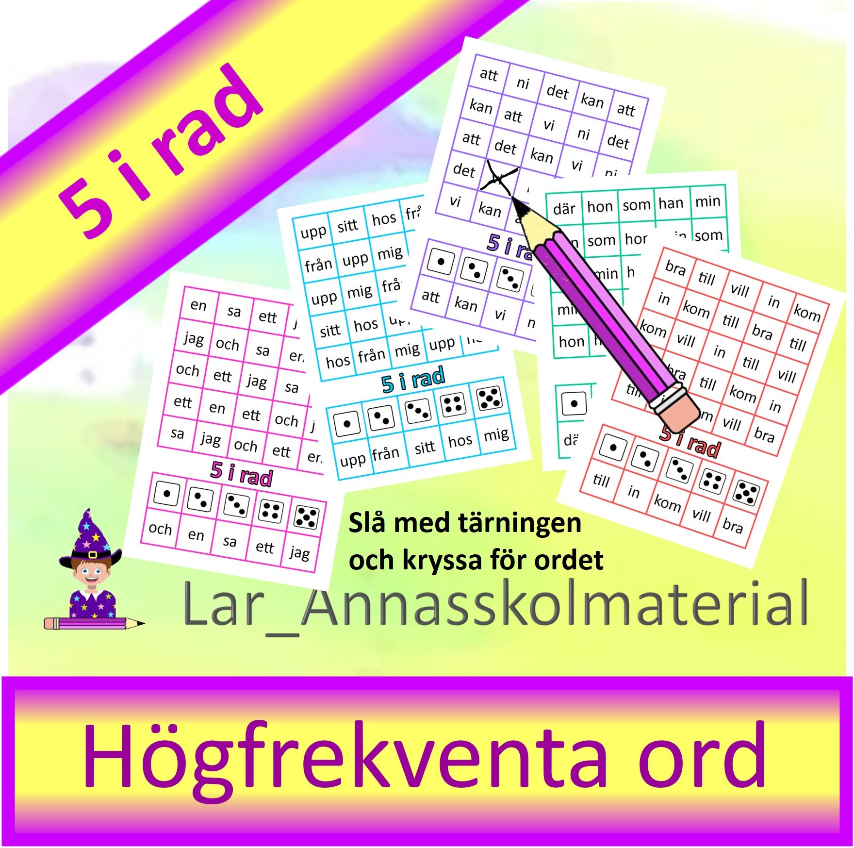Varje spelare har sin egna bricka. En elev börjar med att slå tärningen och kryssar över ordet som tärningen visar. Sedan fortsätter de tills en av eleverna har fått fem i rad. Slår man en 6 går turen vidare.