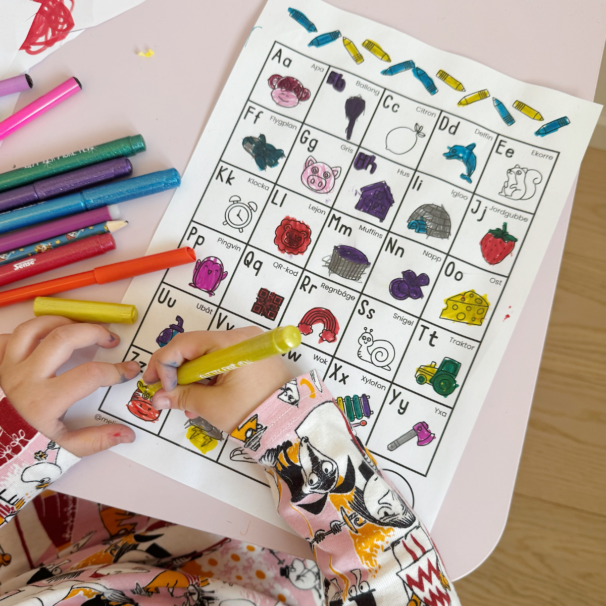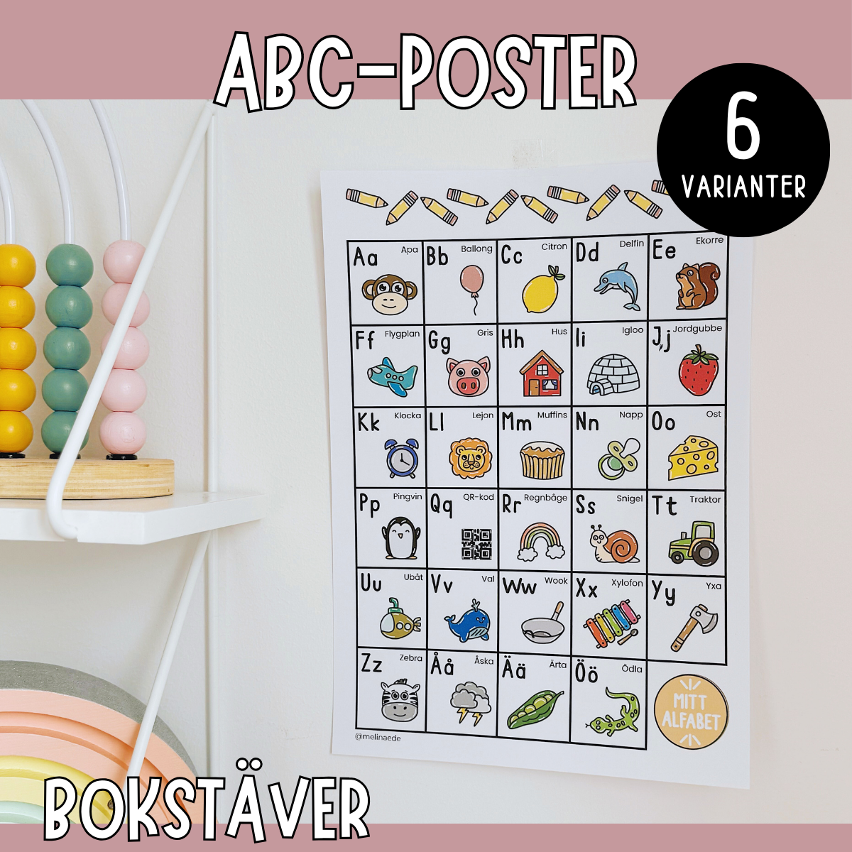 đ Gör alfabetet roligare med denna fina alfabettavla! Varje bokstav har en egen figur och ordet utskrivet, vilket gör det lĂ€ttare för barnen att koppla bokstav och ljud. Perfekt för vĂ€ggen i klassrummet eller barnrummet.