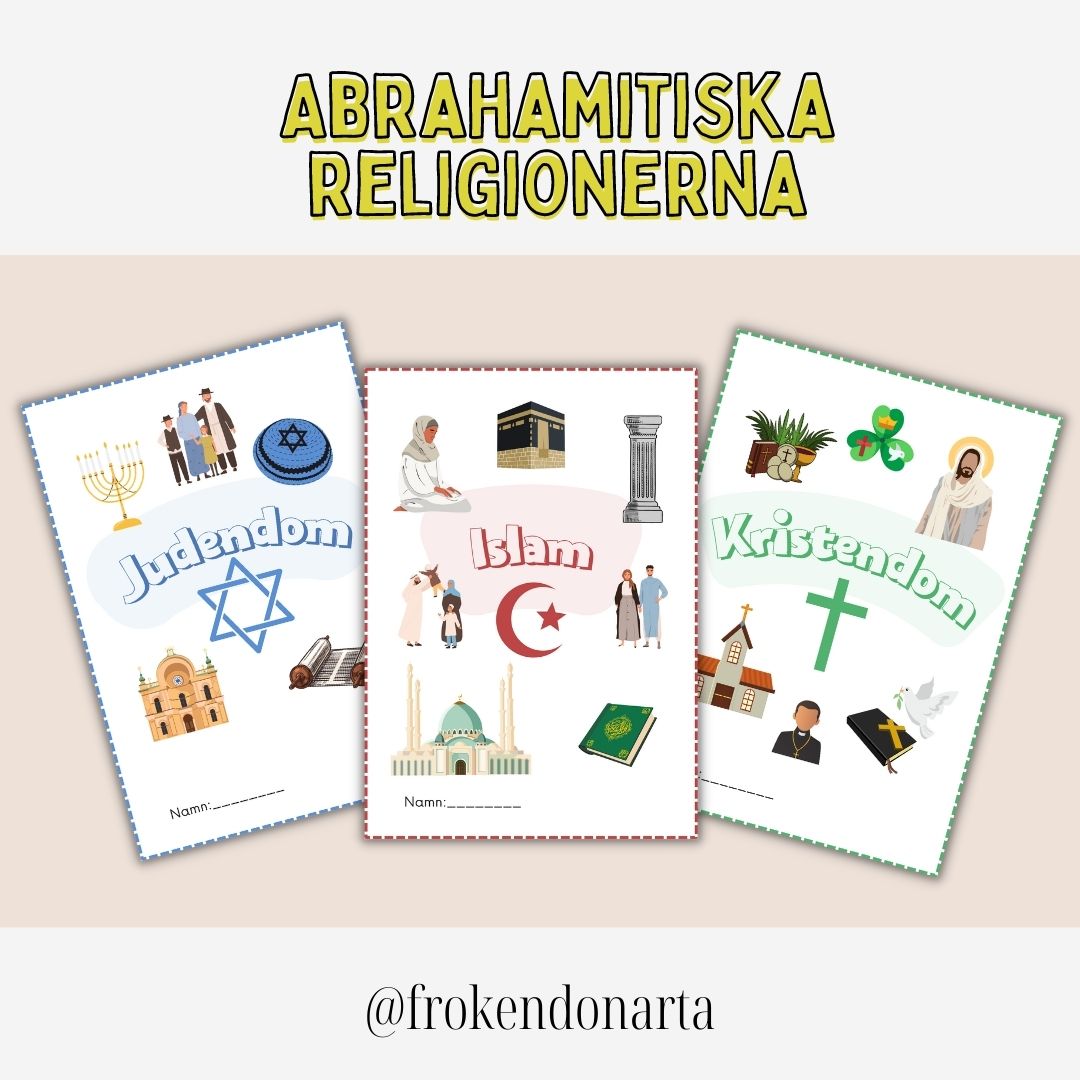 Detta är ett stort paket som innehållet ett färdigt material för ett helt arbetsområde om de om syskonreligionerna, eller de Abrahamitiska religionerna(judendom, kristendom & islam).