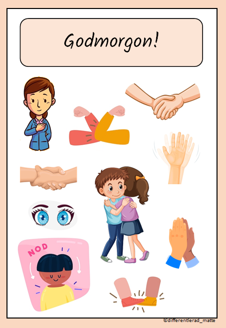 Skriv ut och häng upp. Låt sedan eleverna välja hur just ni två ska hälsa utifrån affischen.