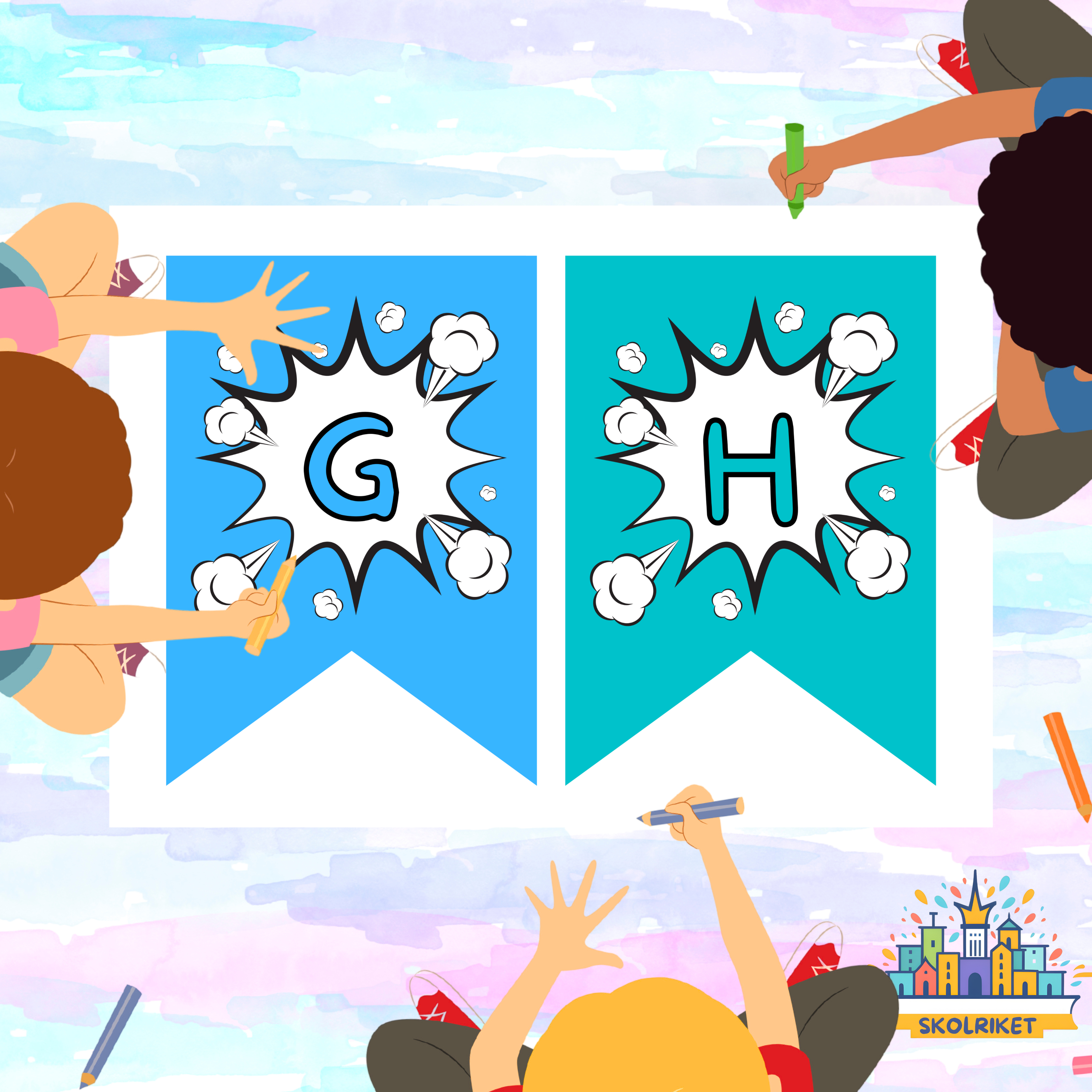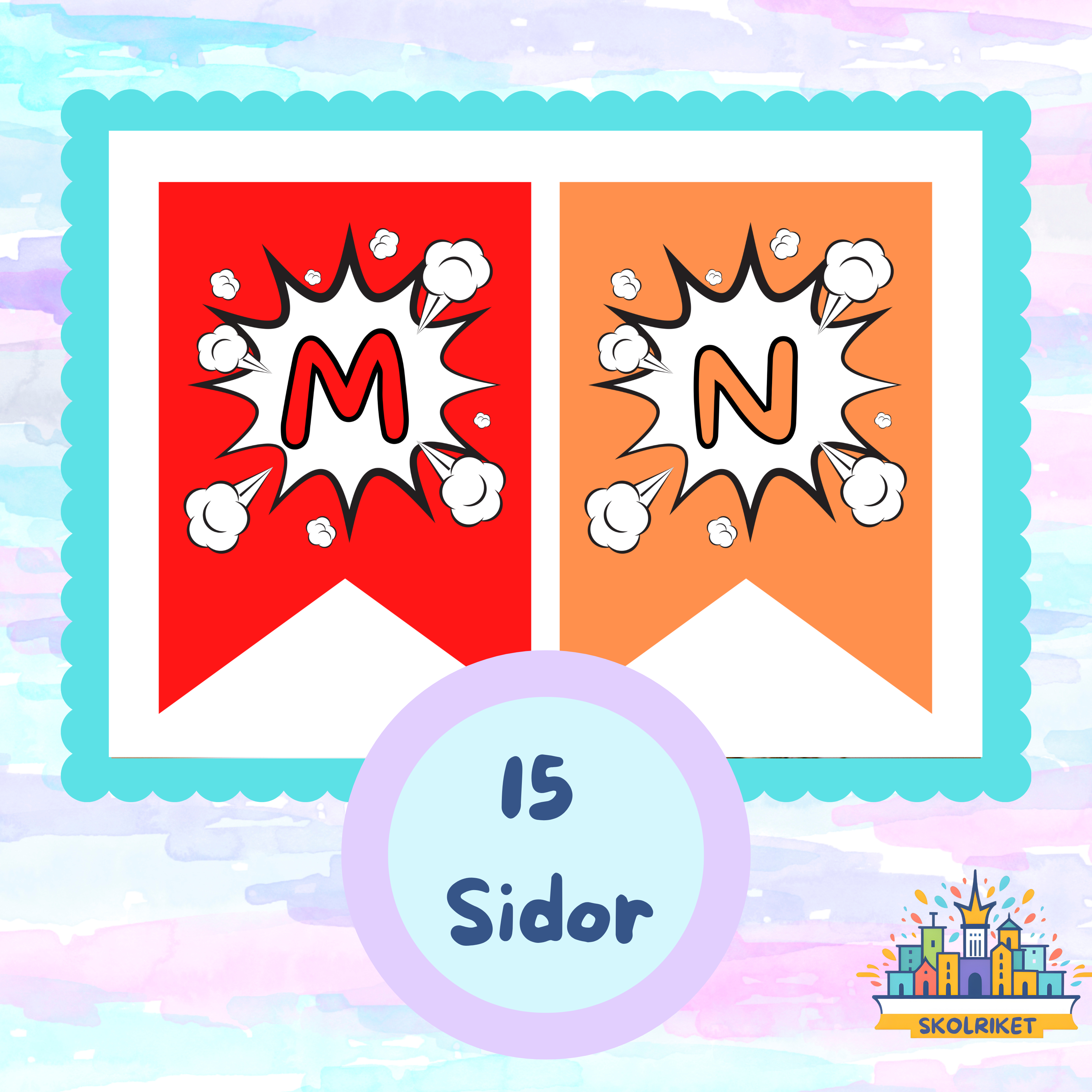Vimpel med Popart/Superhjälte tema. Hela alfabetet.