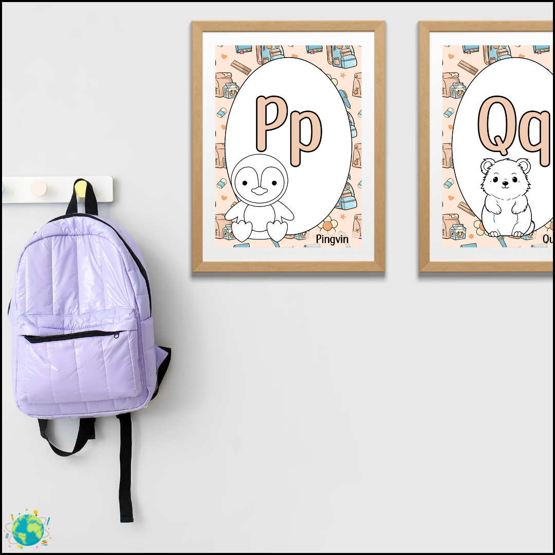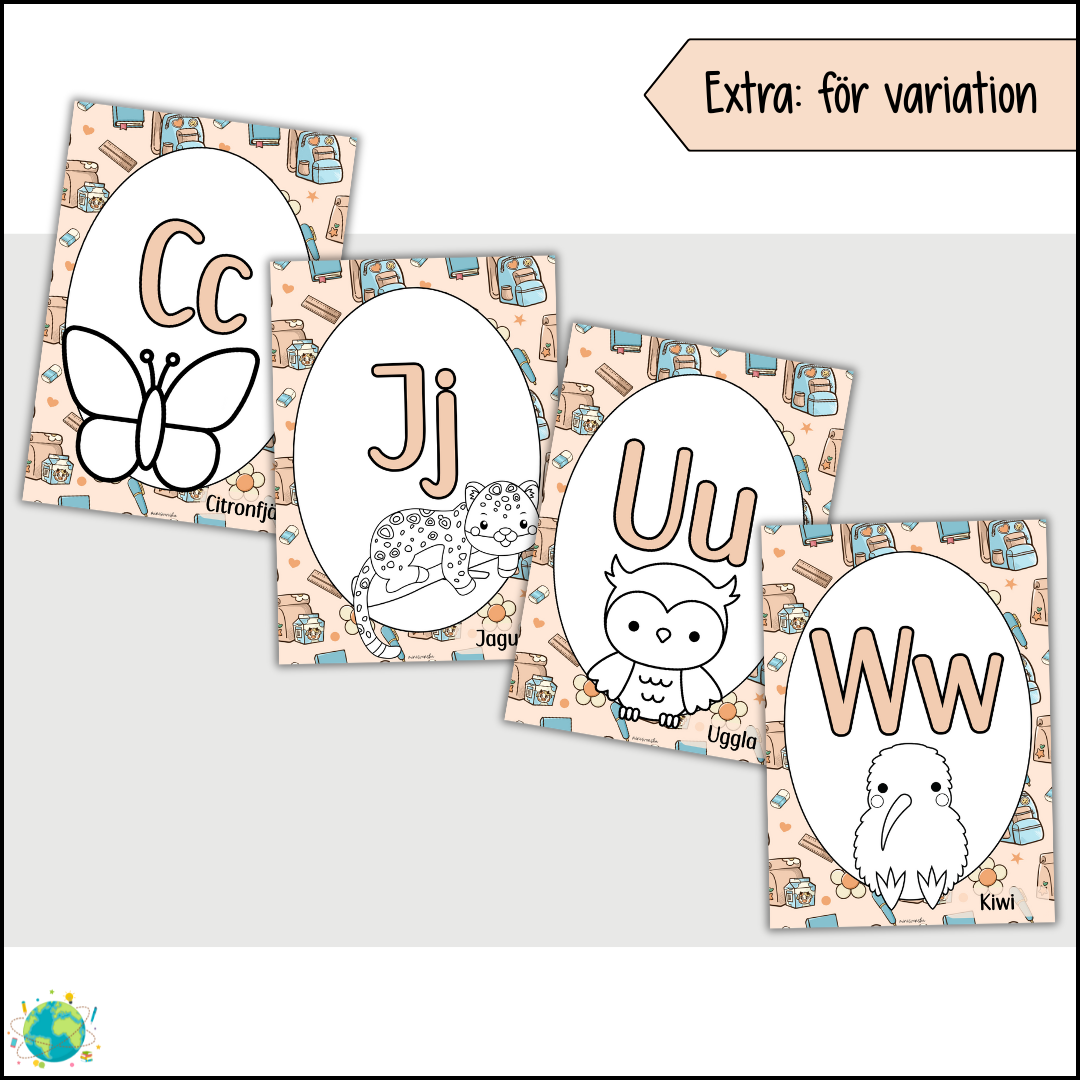 Ett charmigt och barnvänligt alfabetspaket där varje bokstav får sällskap av ett djur – perfekt för förskoleklass och åk F–1! Den här designen med beige färg gör det enkelt att passa in i olika klassrumsmiljöer utan att ta över.