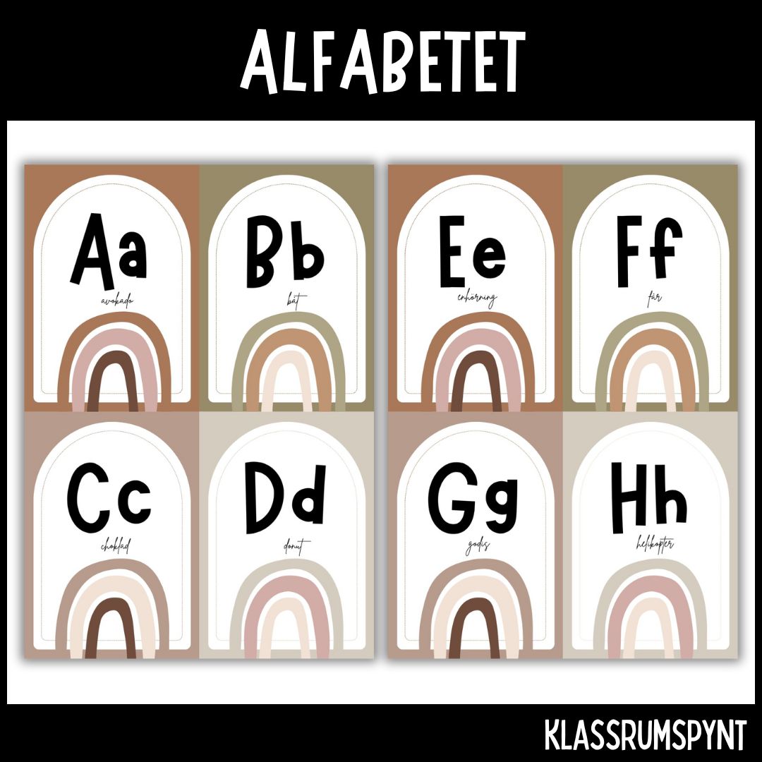 Pynta klassrummet med detta alfabet (a-ö). Till varje bokstav finns ett ord.