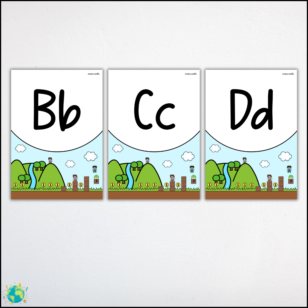 Dekorera väggarna med alfabetet och ett fantastiskt TV-spelstema.