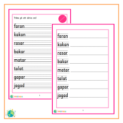 - Träna på att skriva ord med fem bokstäver med hjälp av stödlinjer