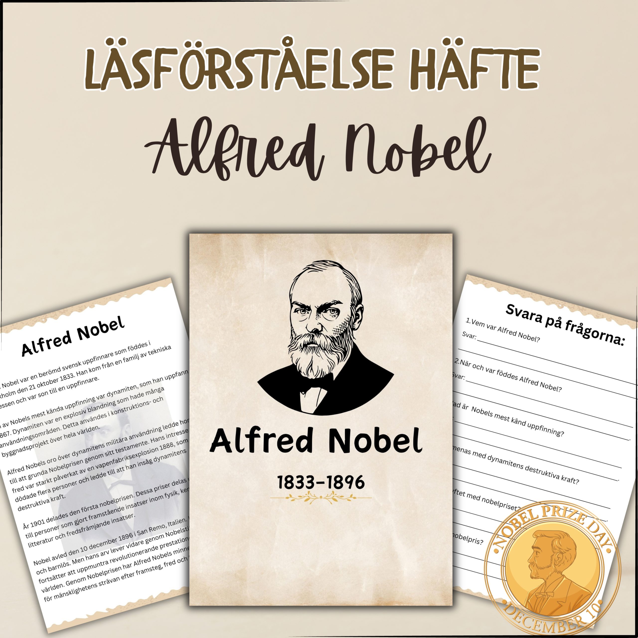 Eleverna kan även skriva egna faktatexter om Alfred Nobel. Extra sida inkluderat. Färglägga bilderna 🙂