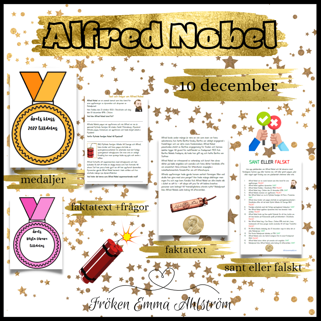 Nobeldagen, Dekoration, NO, Svenska, Läsa: Berättande text, Läsförståelse, Skriva: Faktatext