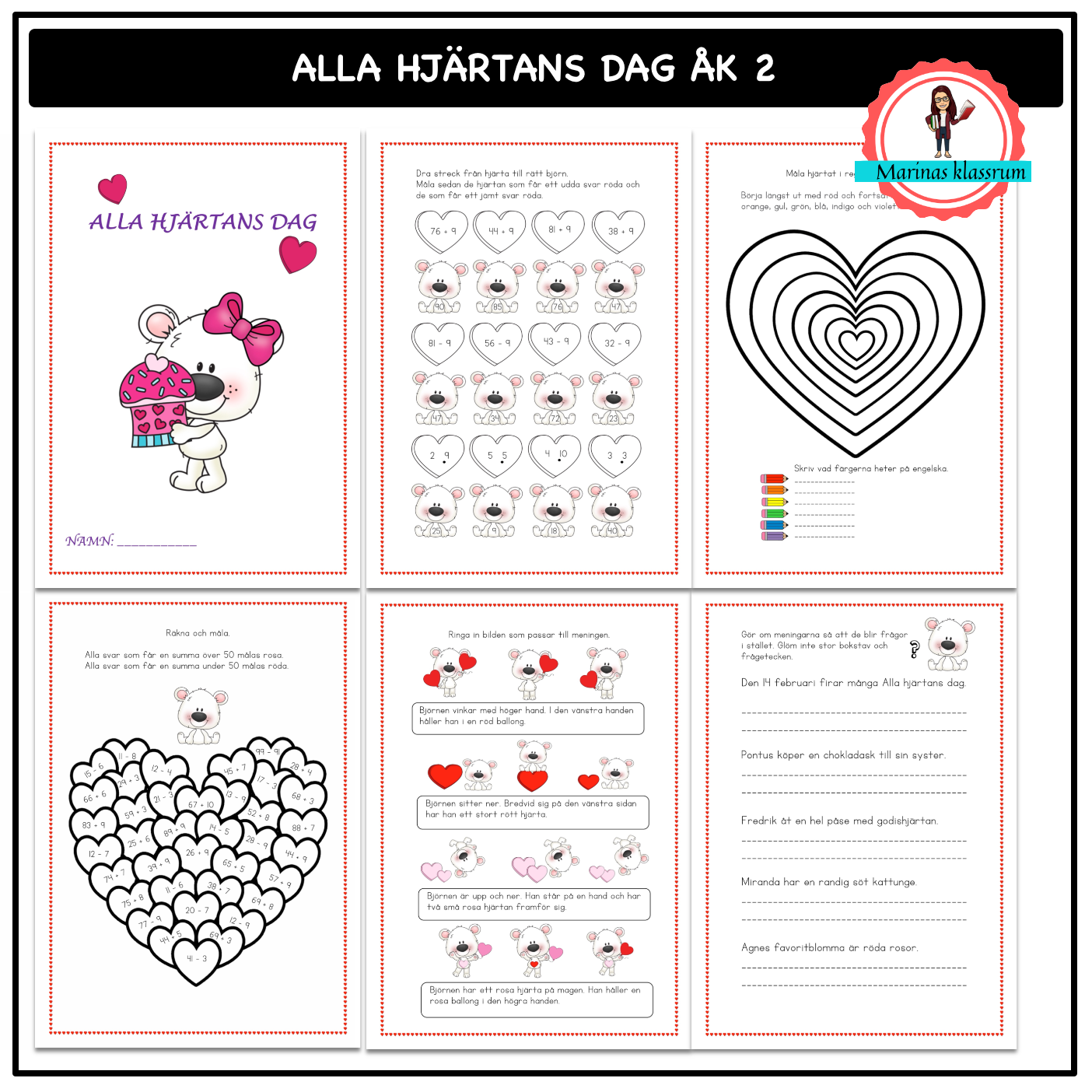 Ett arbetshäfte med tema kärlek med olika uppgifter i matte, engelska och svenska. Totalt 10 sidor.