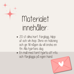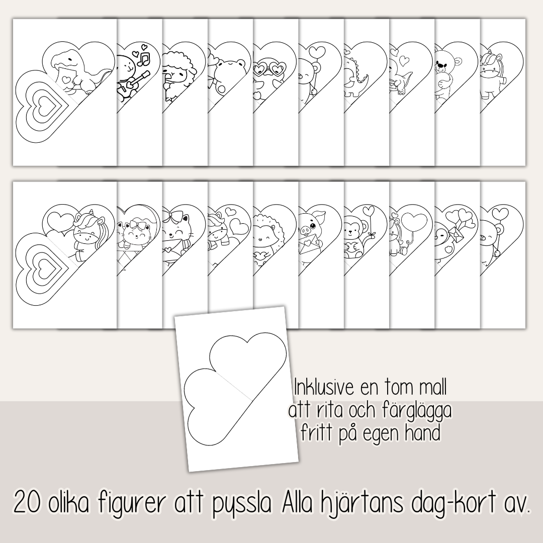 - 20 st olika kort. Färglägg, klipp ut och vik ihop. Skriv en hälsning och ge till någon du vill önska en fin Alla hjärtans dag.