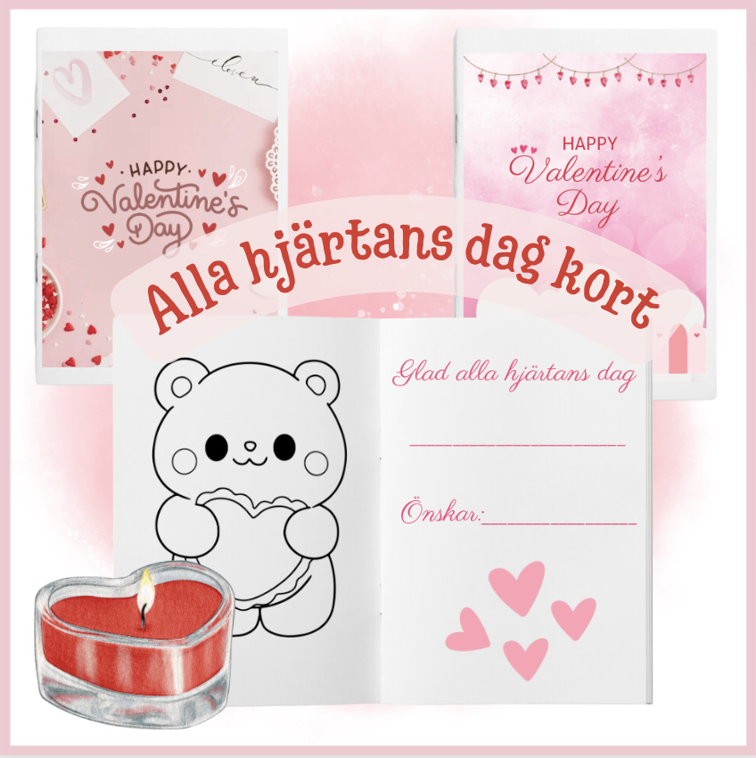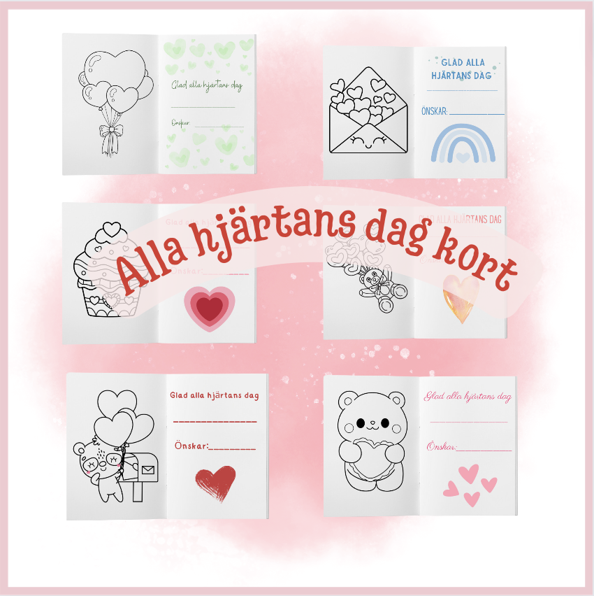 Vikbara alla hjärtans dag kort med 6 olika motiv. Skrivs ut i A4 och viks till en liten bok (enkelt).