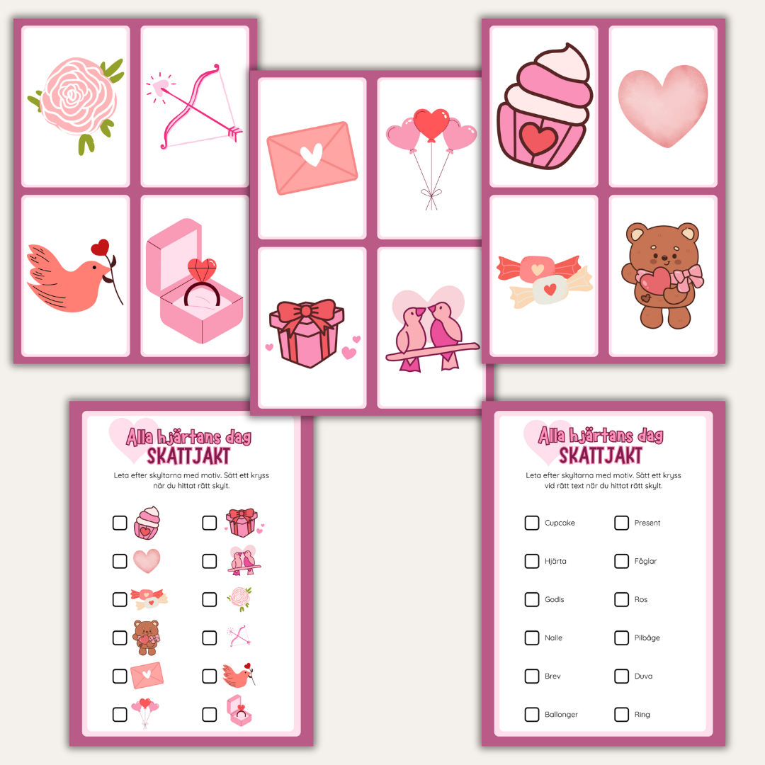 Med detta material kan ni enkelt anordna en skattjakt med Alla hjärtans dag-tema.