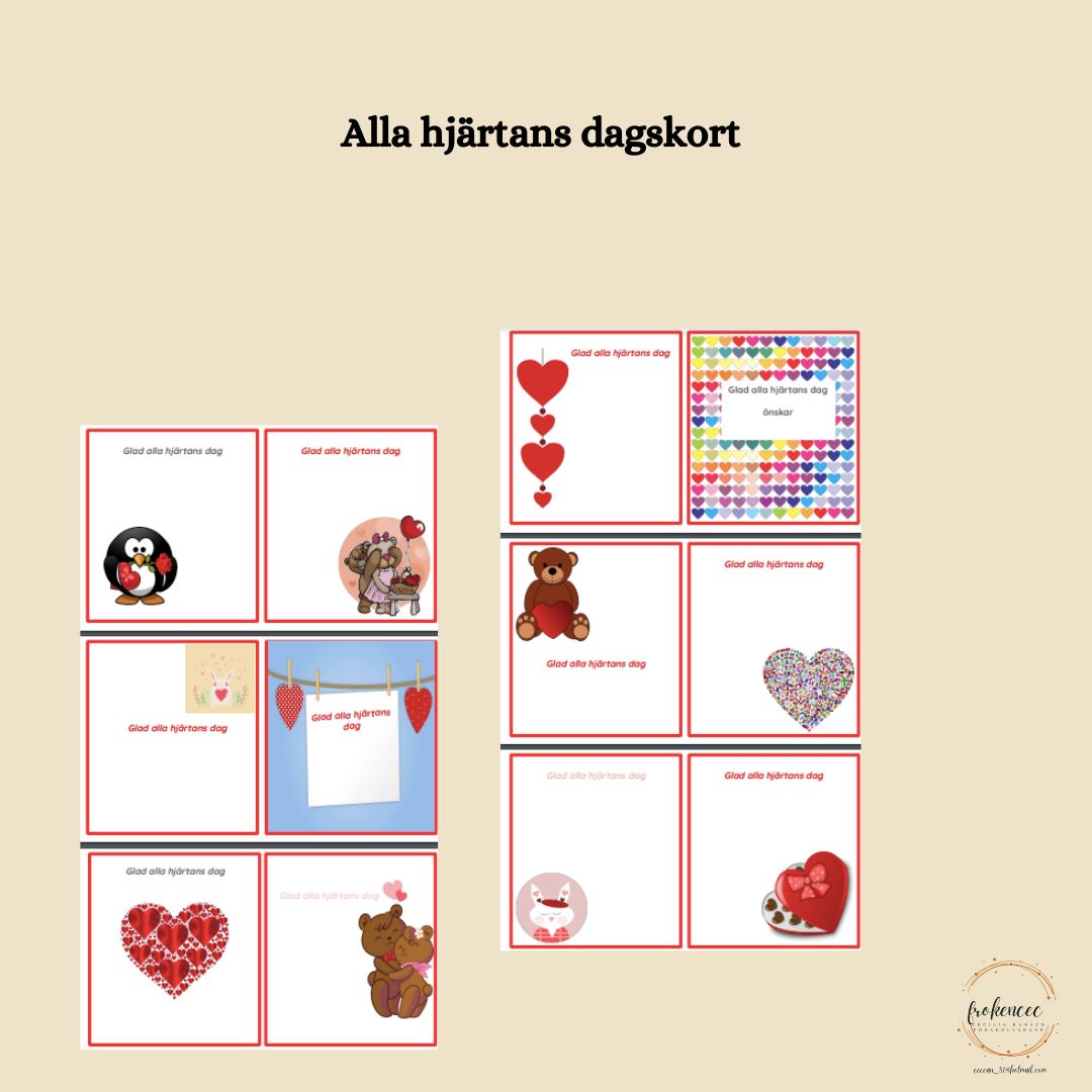 12 st alla hjärtans dagskort att klippa ut och klistra på färgat/vitt tjockare papper.