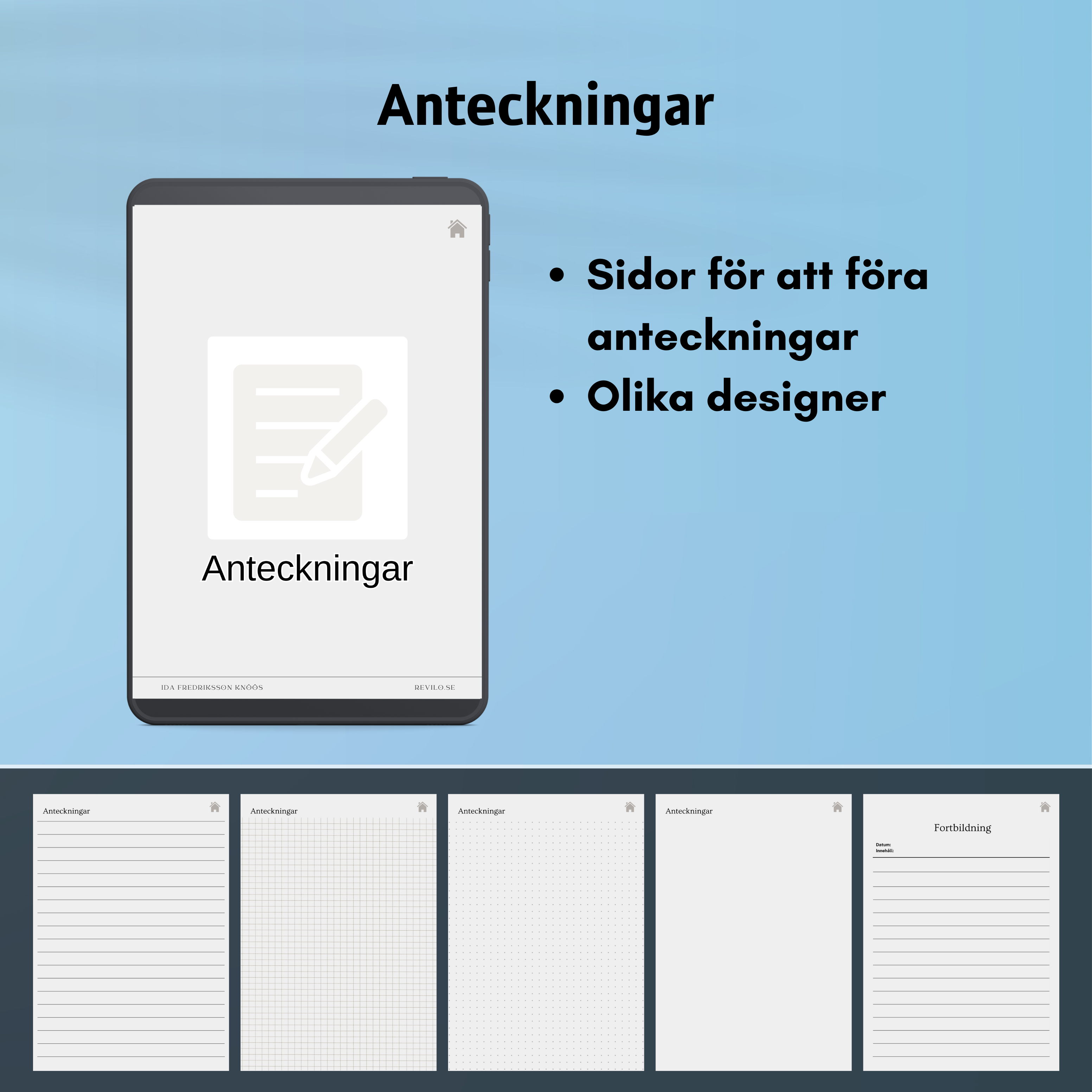 ✓ Anteckningar: Olika designer och blad för att föra anteckningar. Håll allting samlat på en och samma plats!