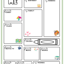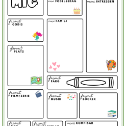 Allt om mig / all about me. Kommer på svenska och engelska samt i svartvit eller färg. Välj den som passar just dina elever bäst!