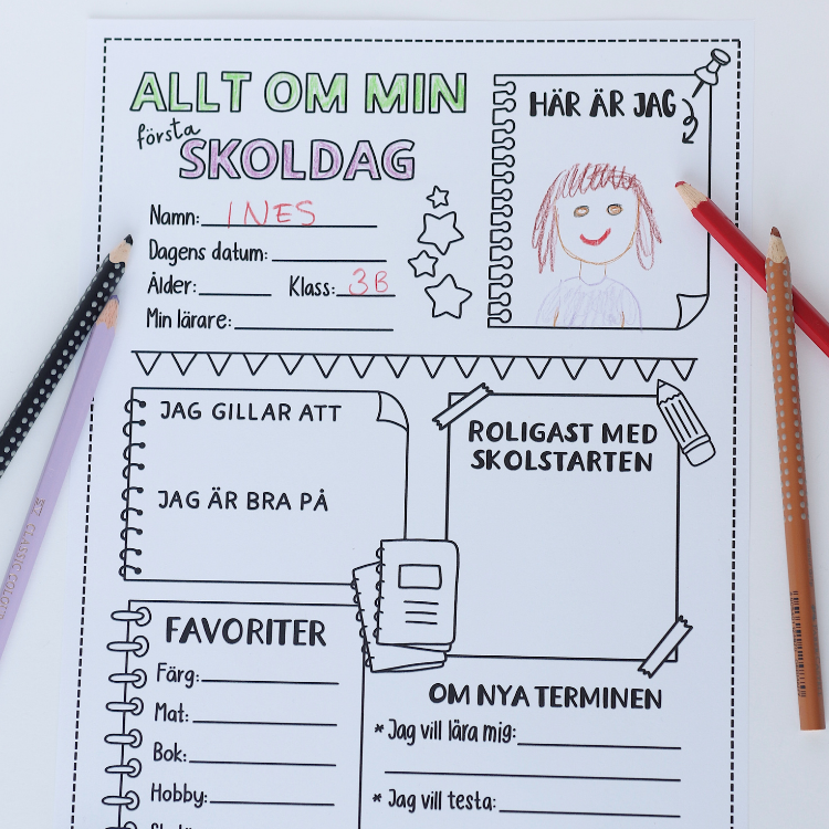 Låt eleverna fylla i ett blad vid skolstarten. Rita, skriv och berätta om hur dagen varit, om sig själv och om nya terminen.
