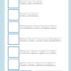 Klipp ut bilderna som passar ihop med respektive årstid och klistra på arbetsbladet tillsammans med redan skrivna meningar eller meningar du skriver själv.
