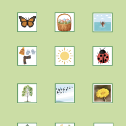 4 blad (nivåer) samt ett tillhörande papper med bilder för varje årstid.
