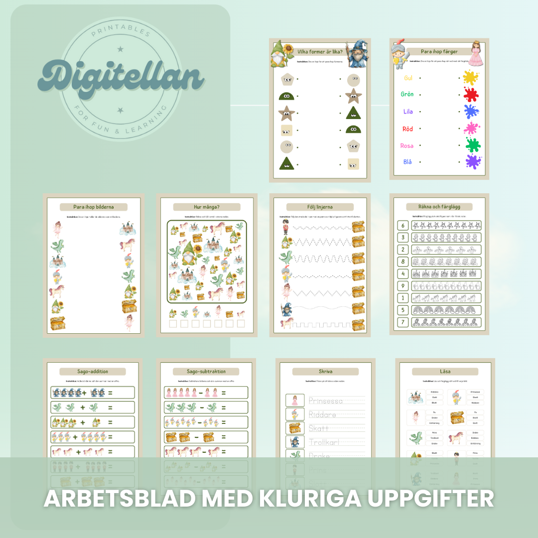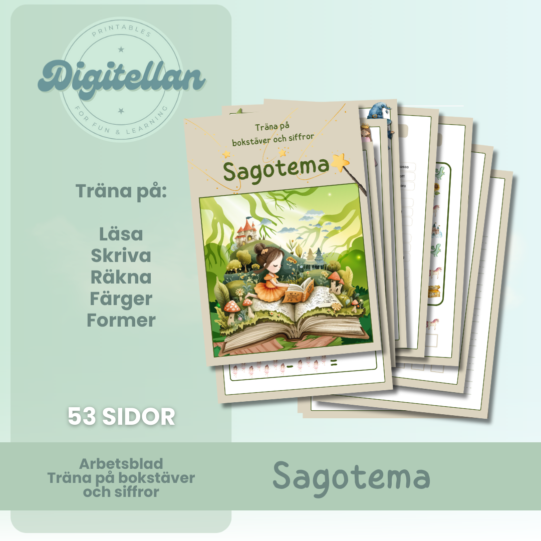 Häfte med 53 arbetsblad med tema Sagans värld