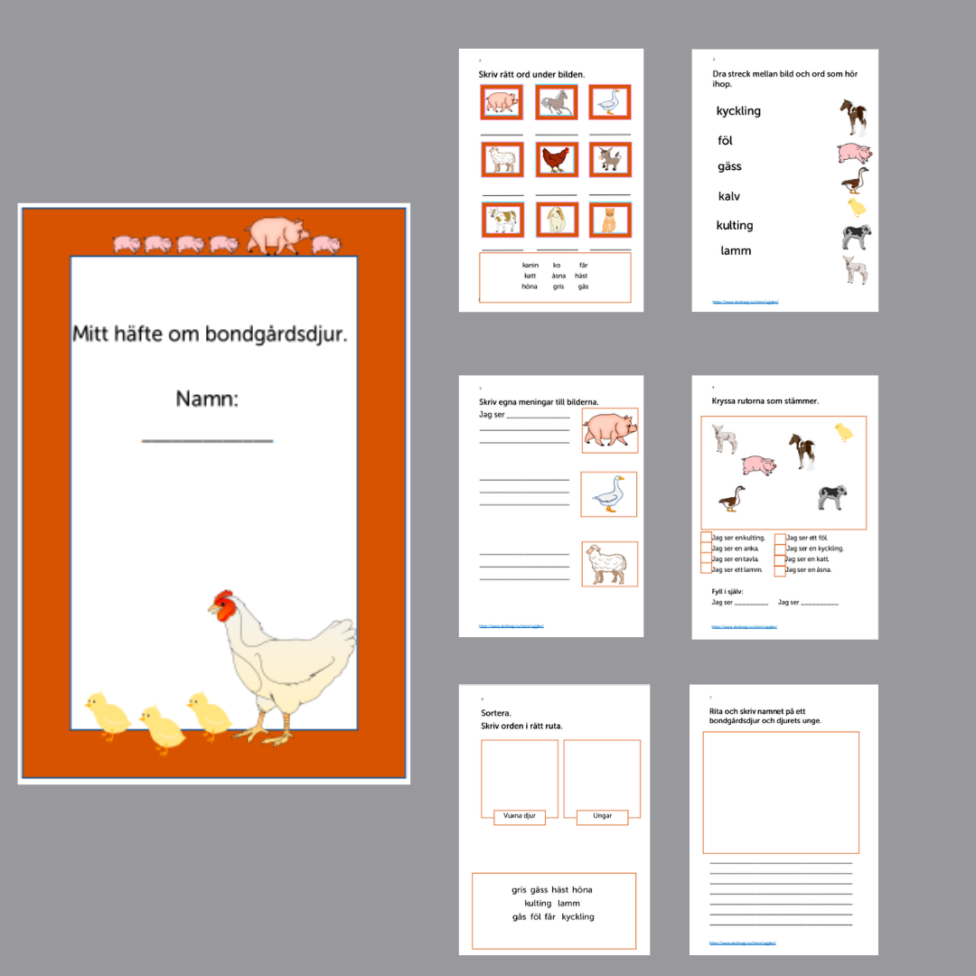 Arbetshäfte som tränar ordbilder: bondgårdsdjur.