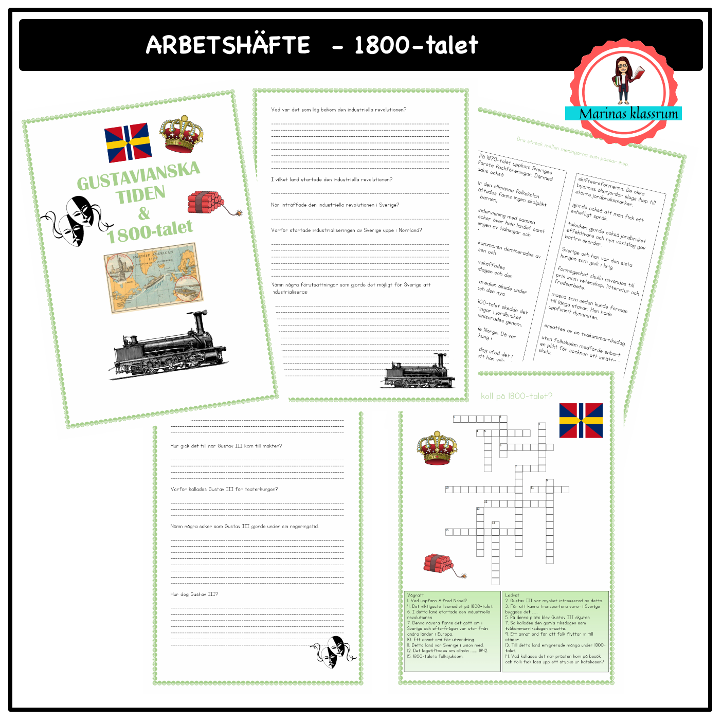 Passar till materialet ”Faktatexter om Gustavianska tiden och 1800-talet” som finns här på skolmagi, marinas klassrum, men det går även att använda arbetshäftet fristående.