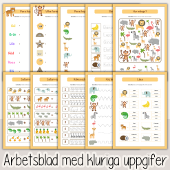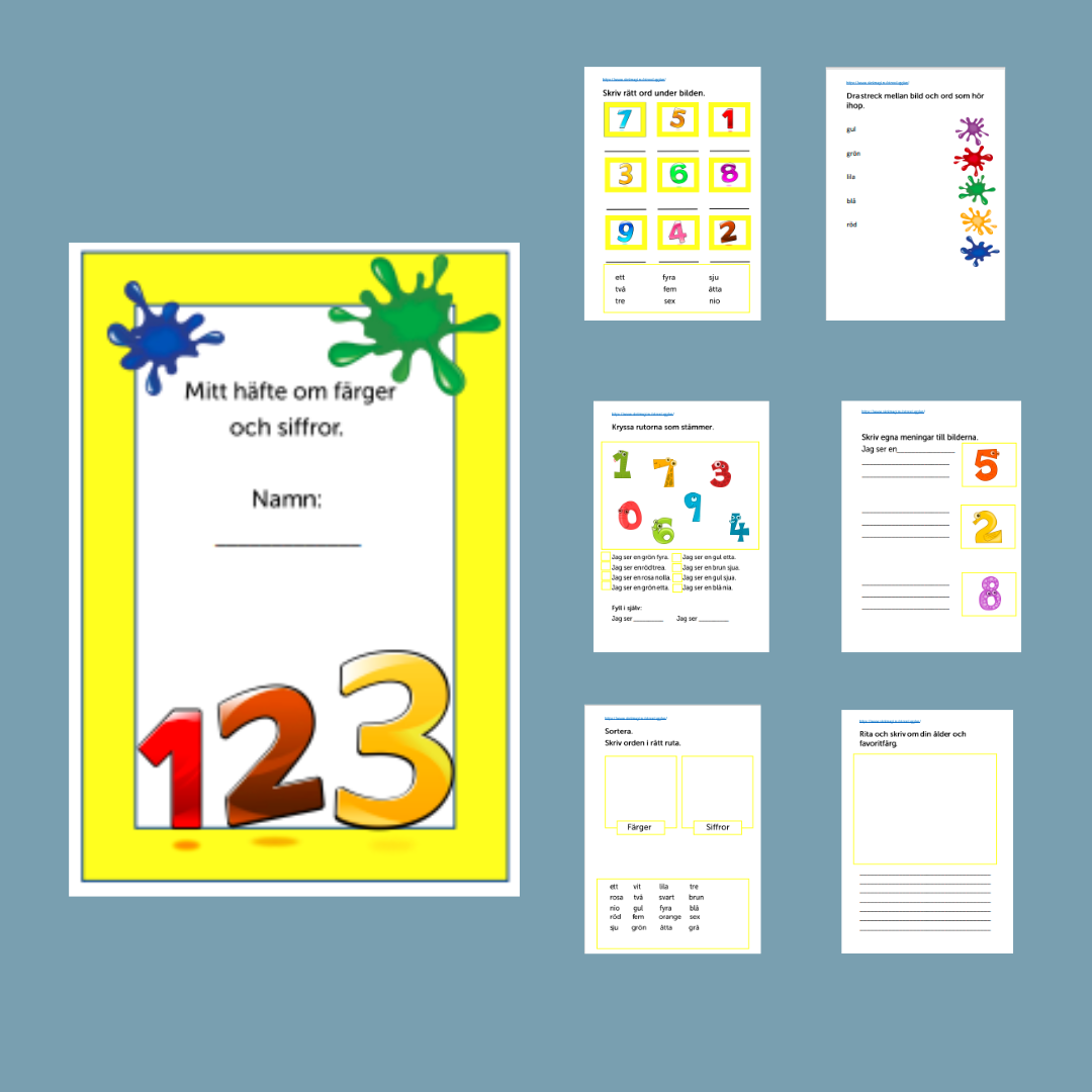 Arbetshäfte som tränar ordbilder: siffror och färger.