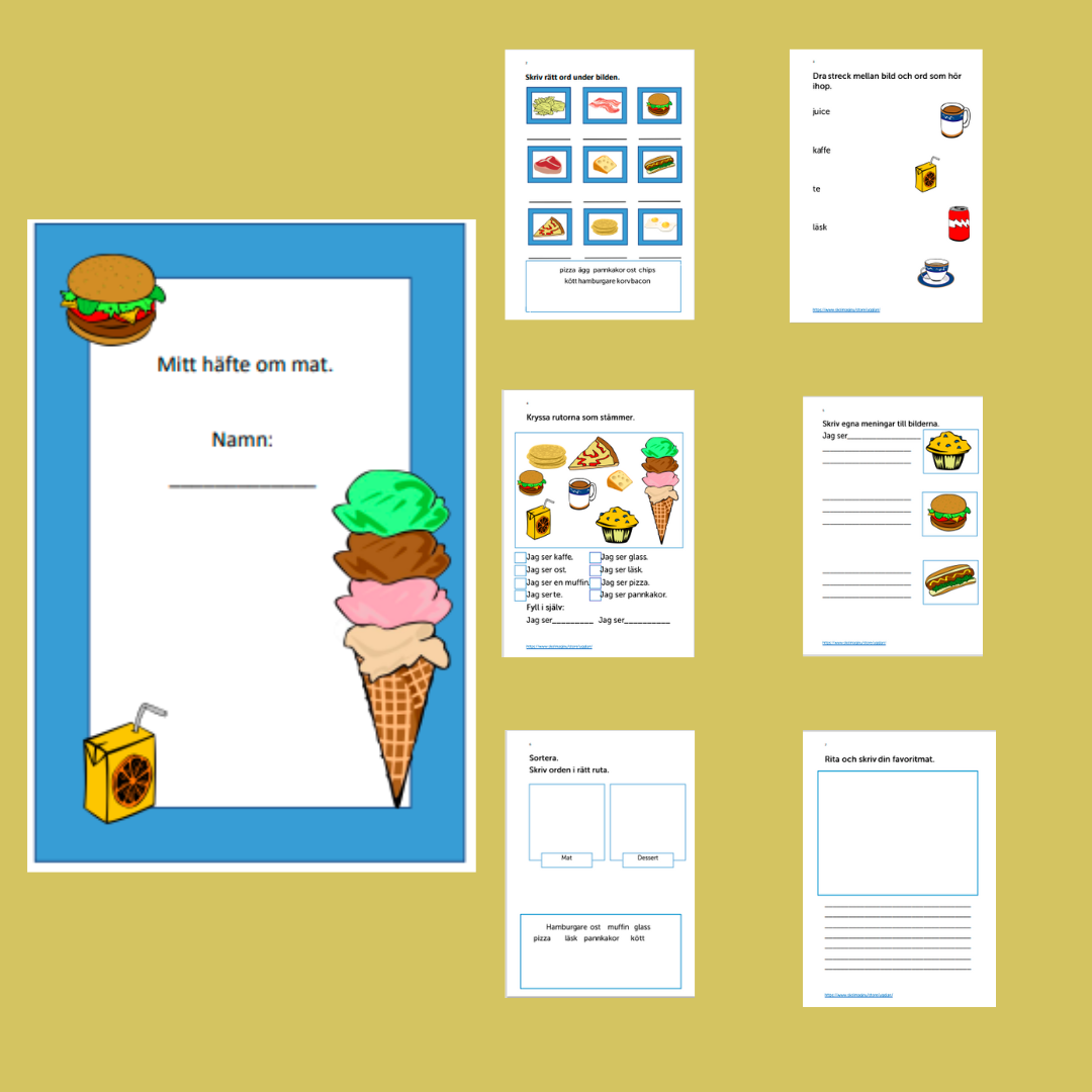 Arbetshäfte som tränar ordbilder: mat.