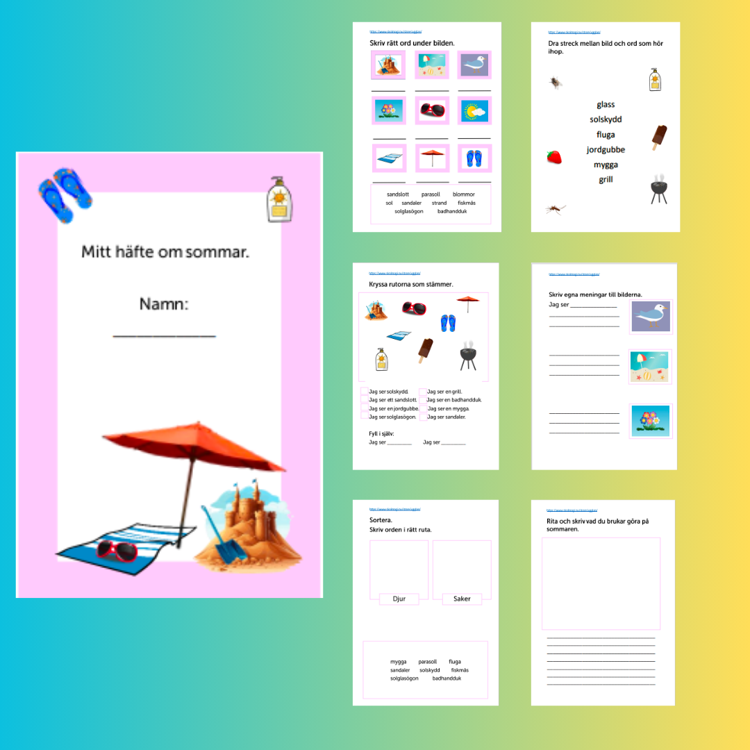 Arbetshäfte som tränar ordbilder: Sommar.