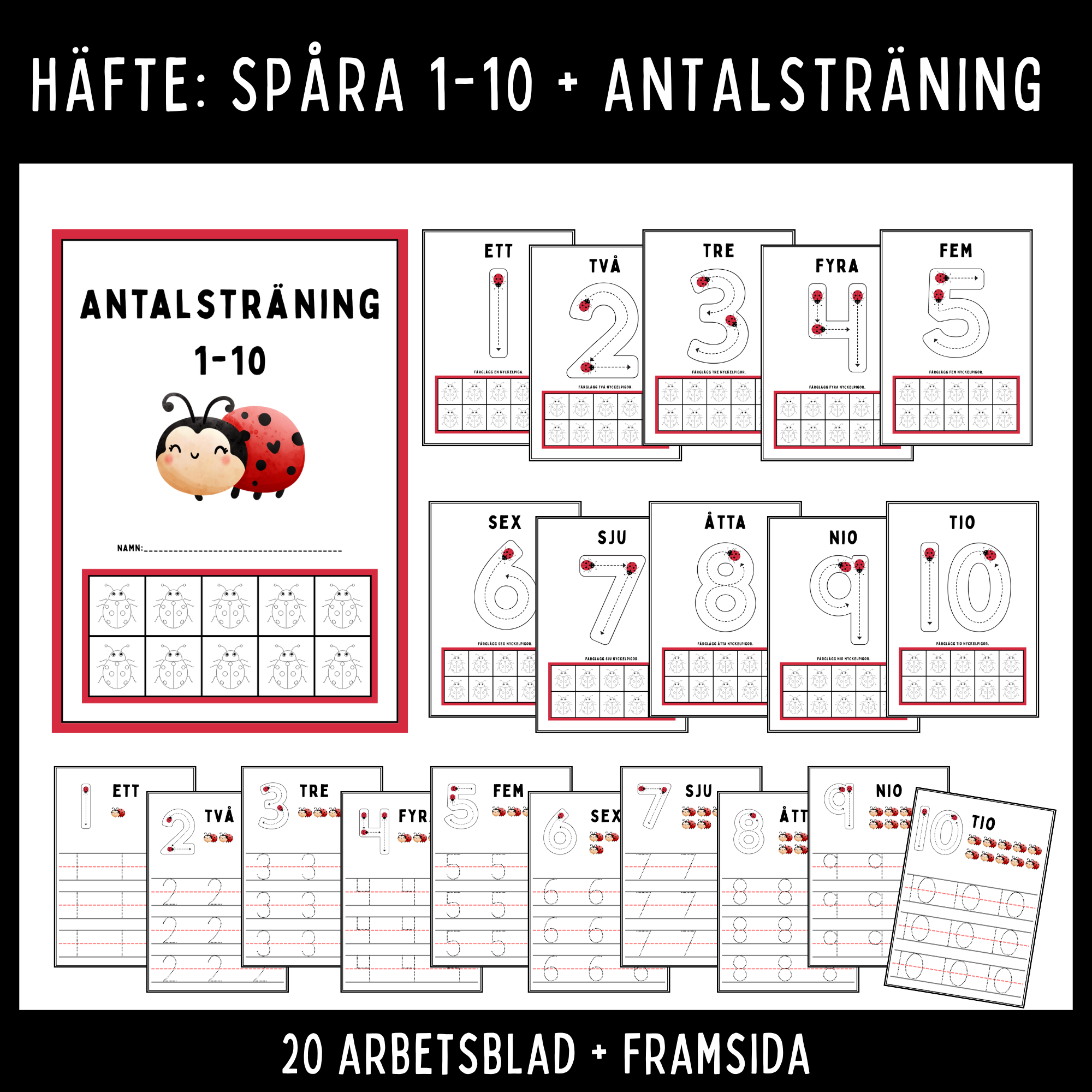 Materialet innehåller 20 arbetsblad + framsida och tränar finmotorik, sifferigenkänning och