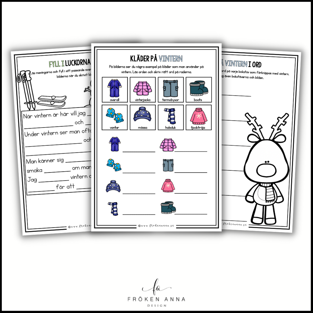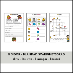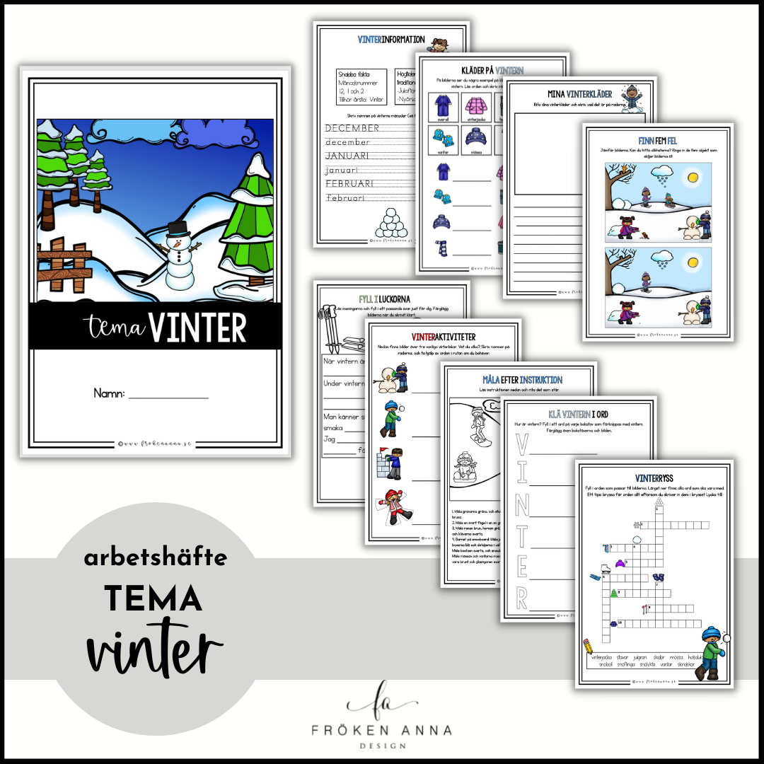 Arbetshäfte på 11 sidor med blandade uppgifter som passar att göra i samband vintern. Häftet innehåller skriv- och rituppgifter blandat med korsord och kluringar bland annat. Välj de sidor som passar just din elev- eller barngrupp. Ha så skoj!