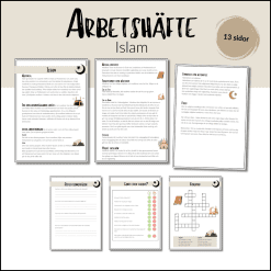- Ett arbetshäfte med faktatexter, frågor, reflektionsfrågor, lucktext, sant eller falskt, korsord, ordsök, läsförståelsetext med frågor, rita och berätta. Samma struktur på samtliga religioner. Totalt 50 sidor.