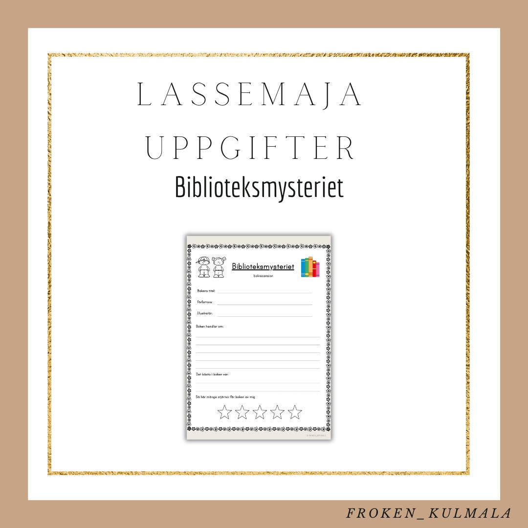 Främja läsning genom att låta barnen läsa boken Lasse Majas detektivbyrå: Biblioteksmysteriet av Martin Widmark för att sedan få en arbetsuppgift till boken. Till Biblioteksmysteriet får eleven träna på att skriva en bokrecension om boken.