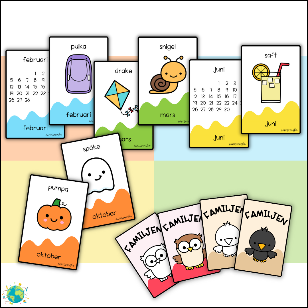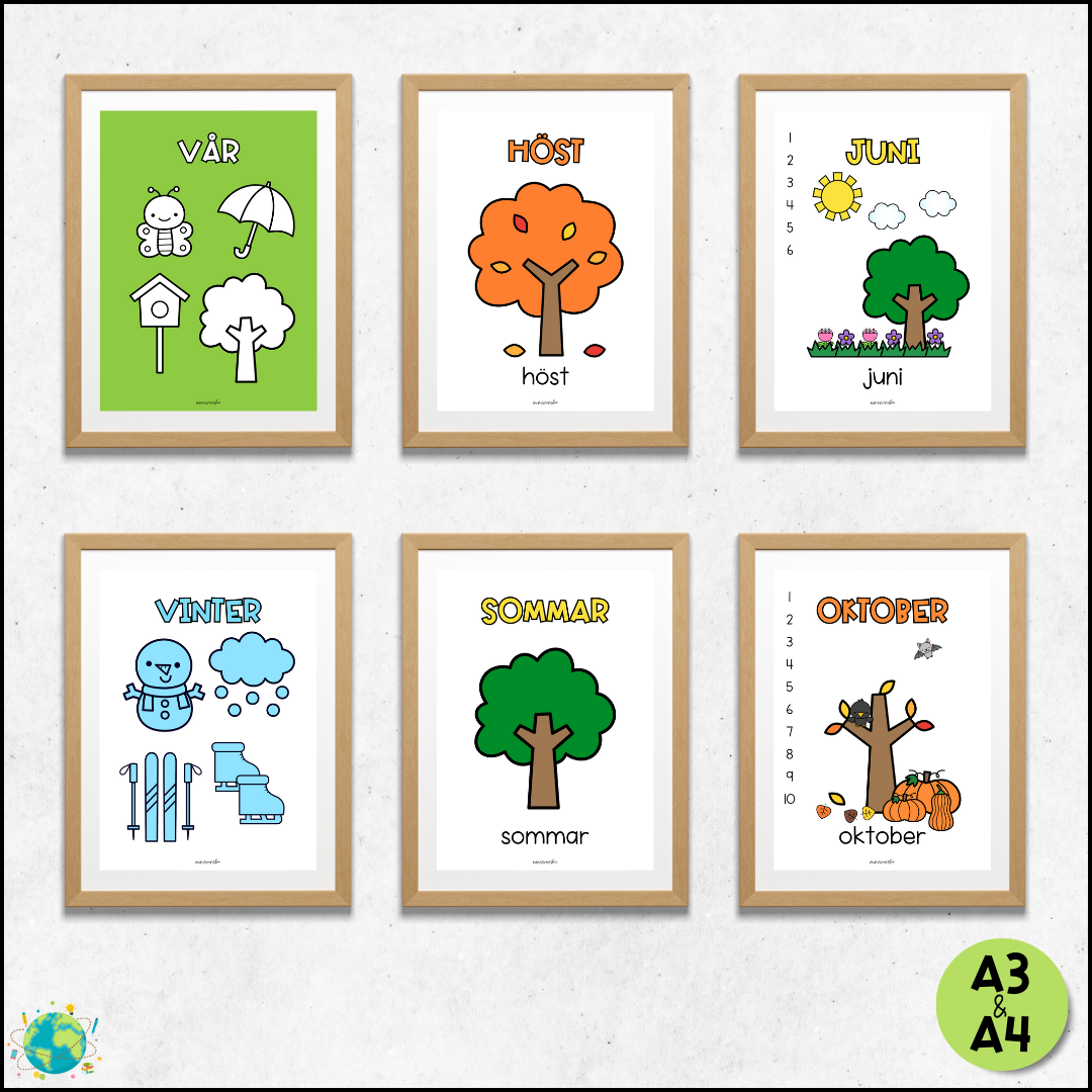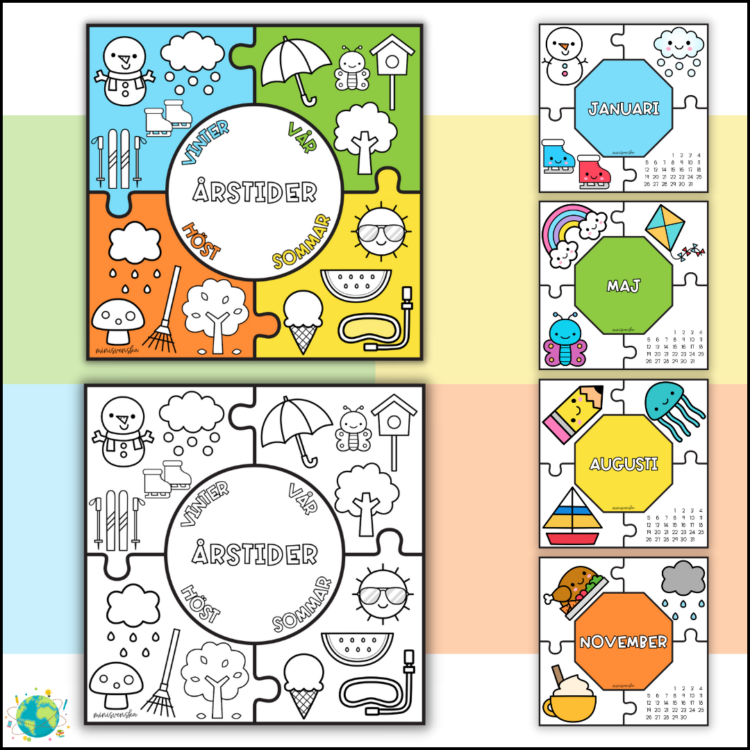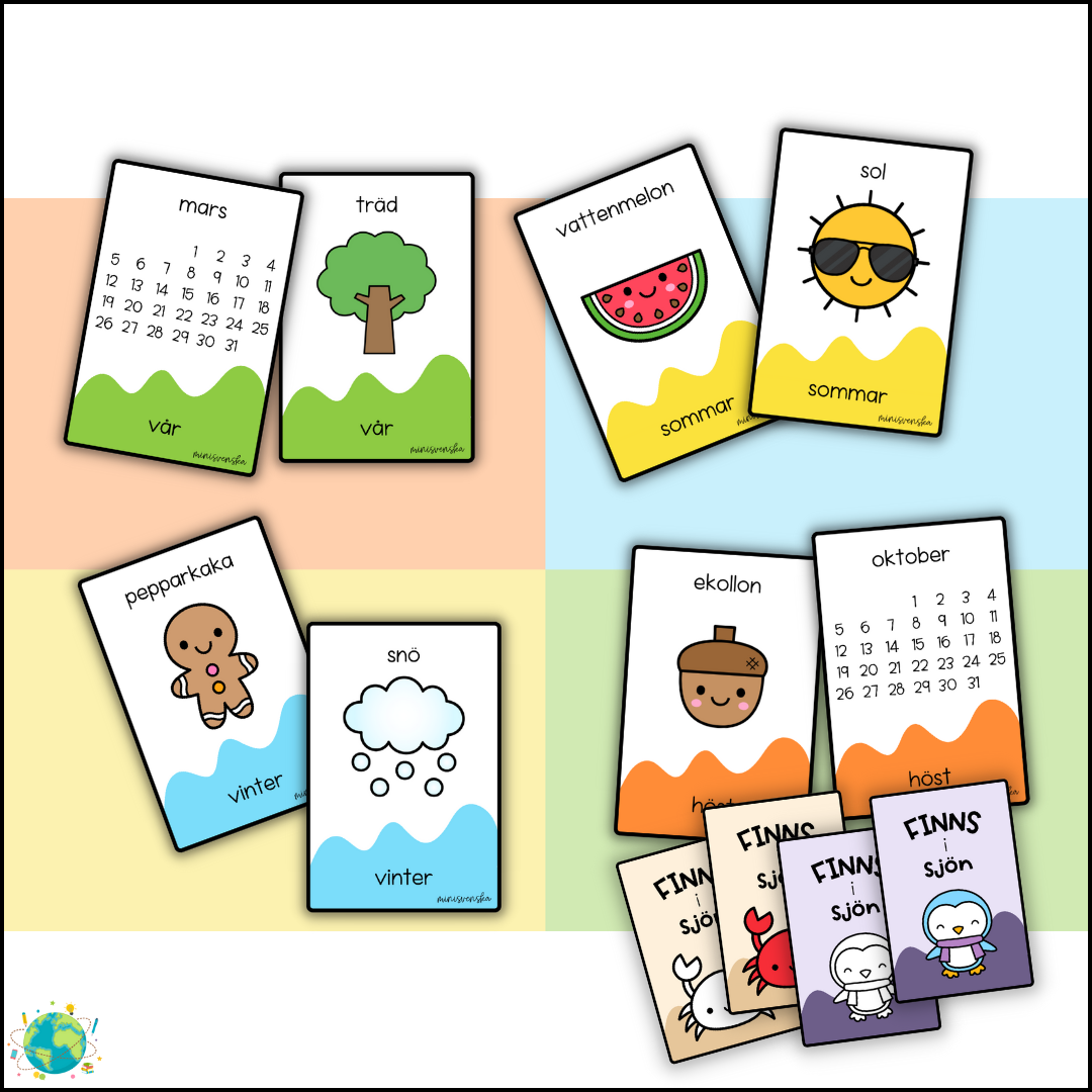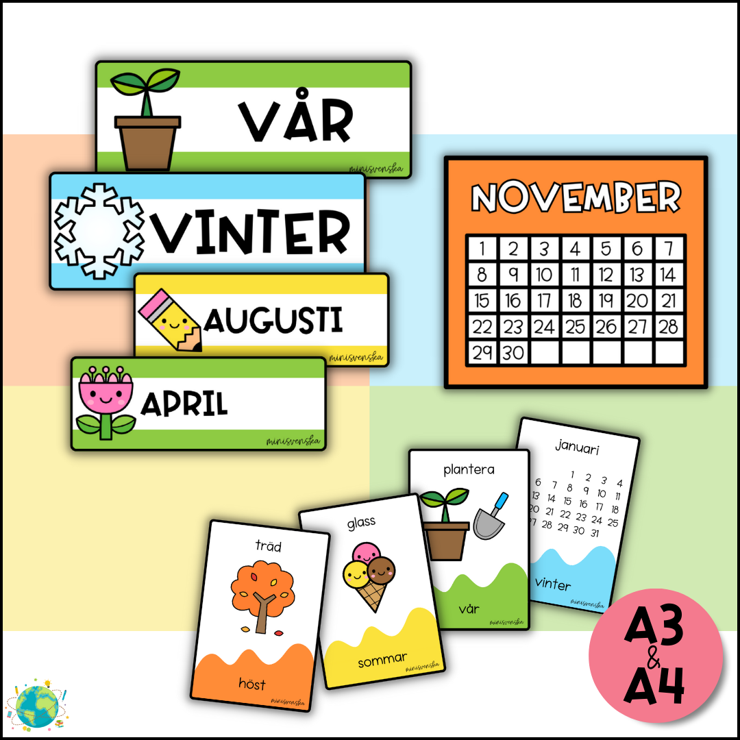 Ett paket med varierat material som du kan använda i temaarbetet med årstider och månader.