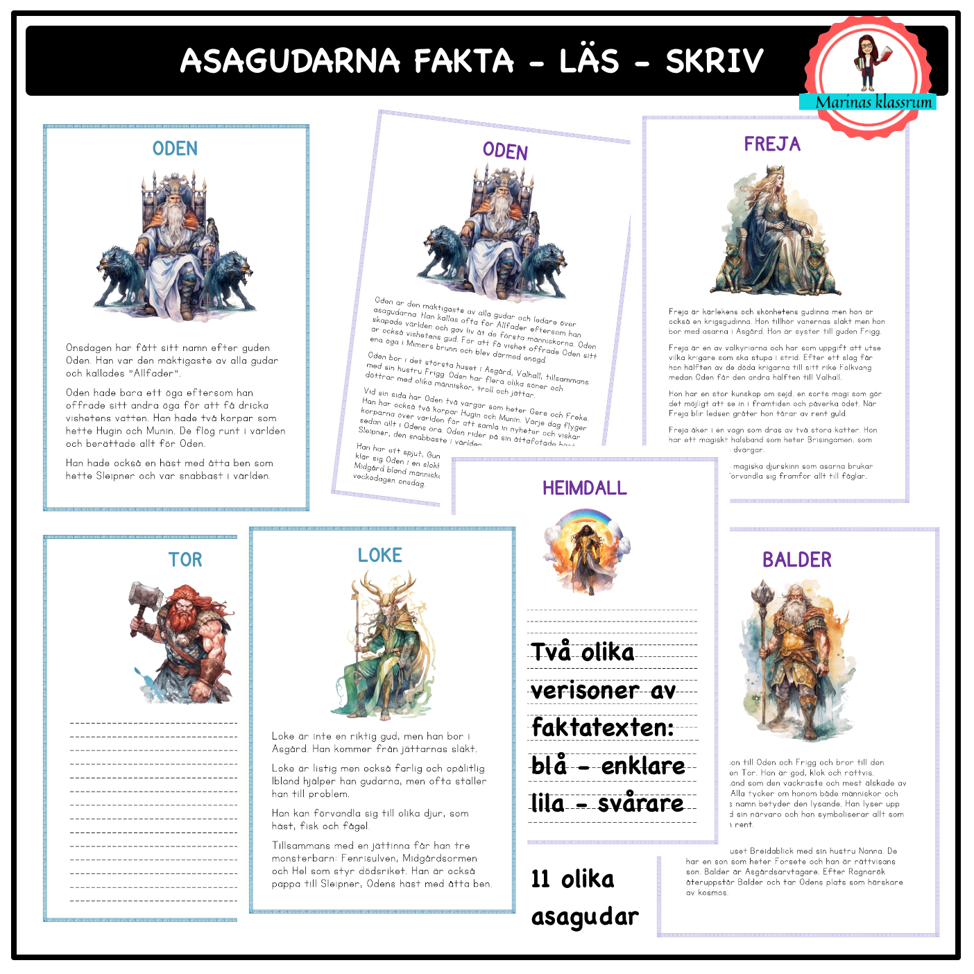Läs faktatexter om 11 olika asagudar och skriv egna faktatexter.