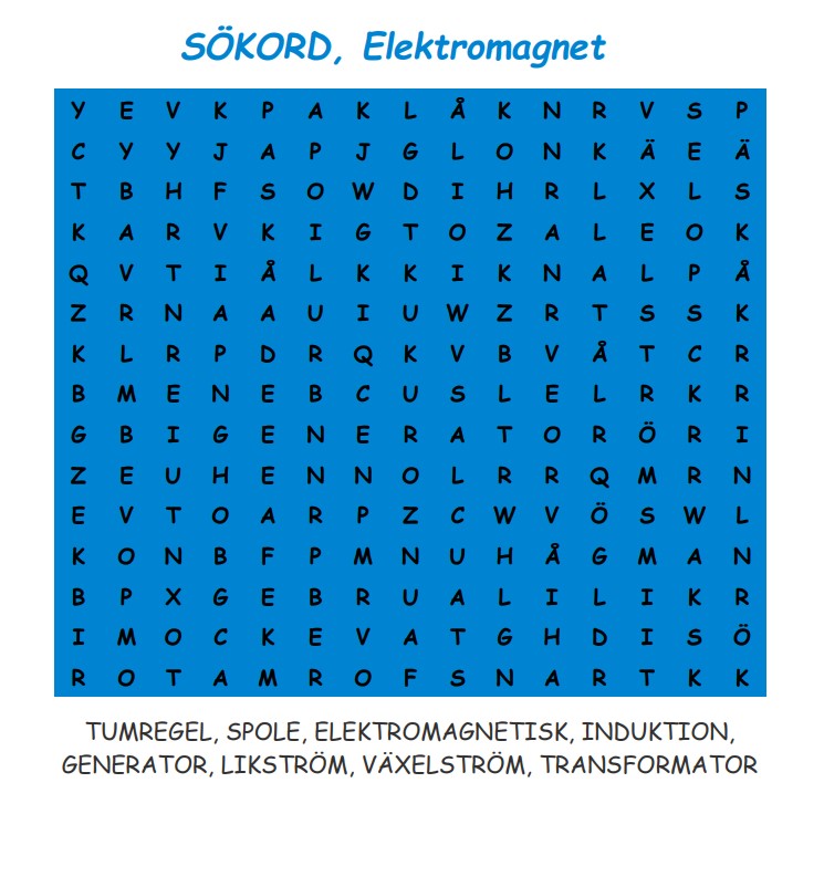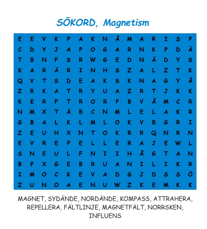 Leta efter ord som är gömda bland en massa blandade bokstäver. Sök i alla riktningar :upp, ner, diagonalt, vänster och höger.