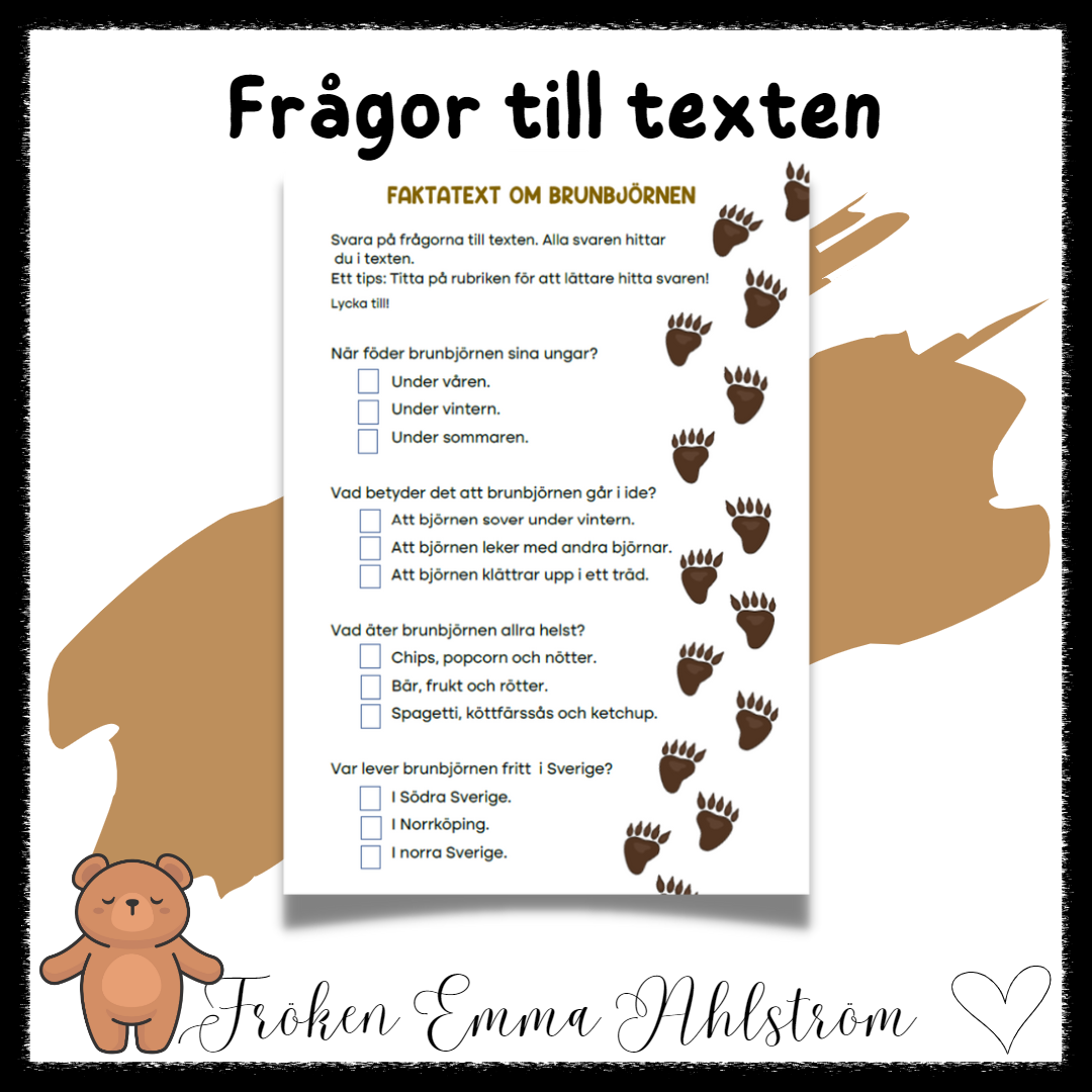 En enkel faktatext om Brunbjörnen som passar till att introducera arbetet med faktatexter och dess uppbyggnad.