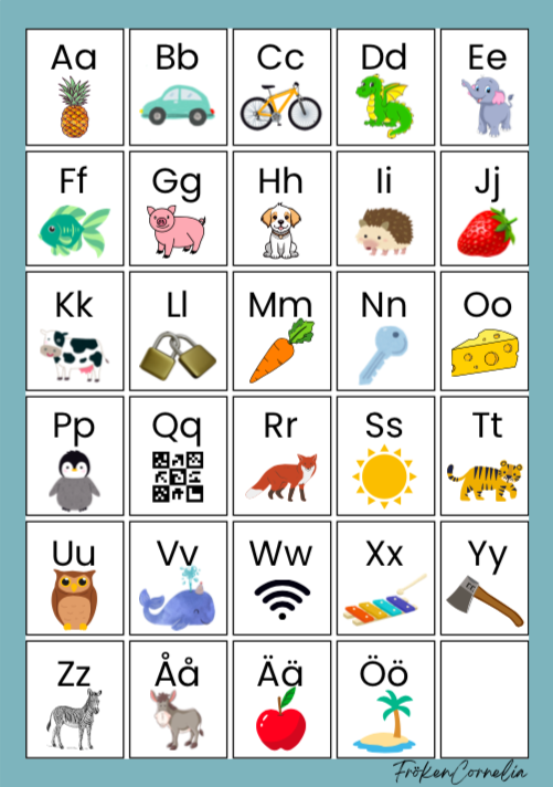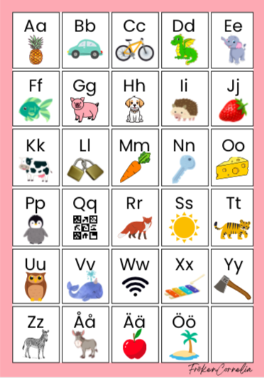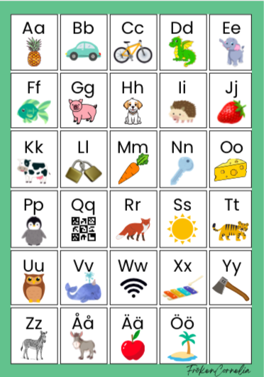 Består av bokstäverna A-Ö med tillhörande bilder.