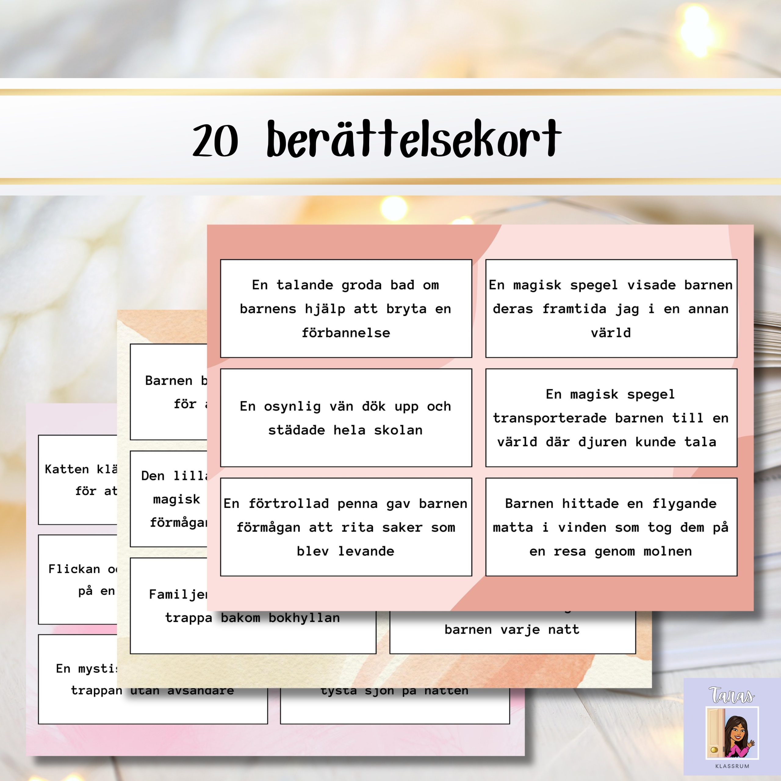 20st berättelsekort med spännande innehåll att främja elevernas fantasi och kreativitet. Klippa och laminera till nästa gång.