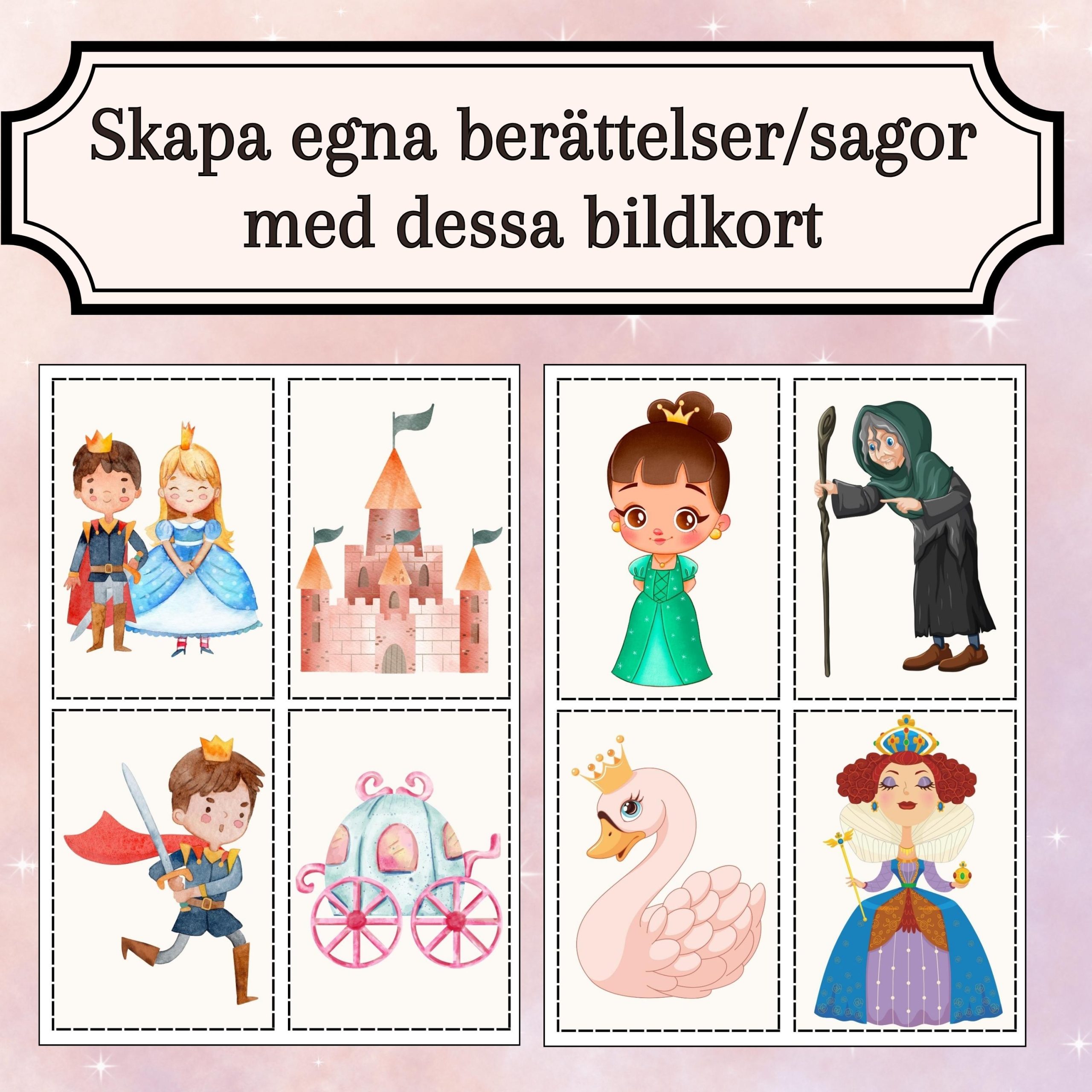Bildkorten kan användas som inspiration/verktyg när eleverna skriver egna/gemensamma berättelser. Det kan vara korta meningar eller längre stycken beroende på deras ålder och färdighetsnivå.