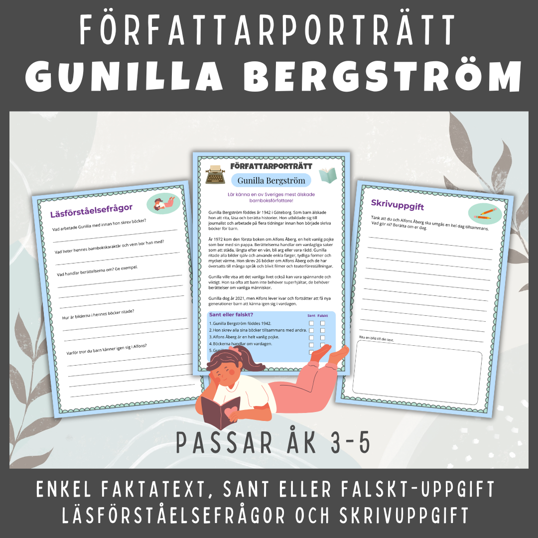 Detta ingår i Barnboksveckan: Författarporträtt Gunilla Bergström för åk 3-5