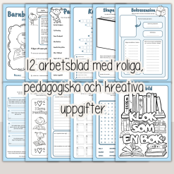 Ett arbetshäfte med olika uppgifter, fakta och klurigheter som har barnbokstema.