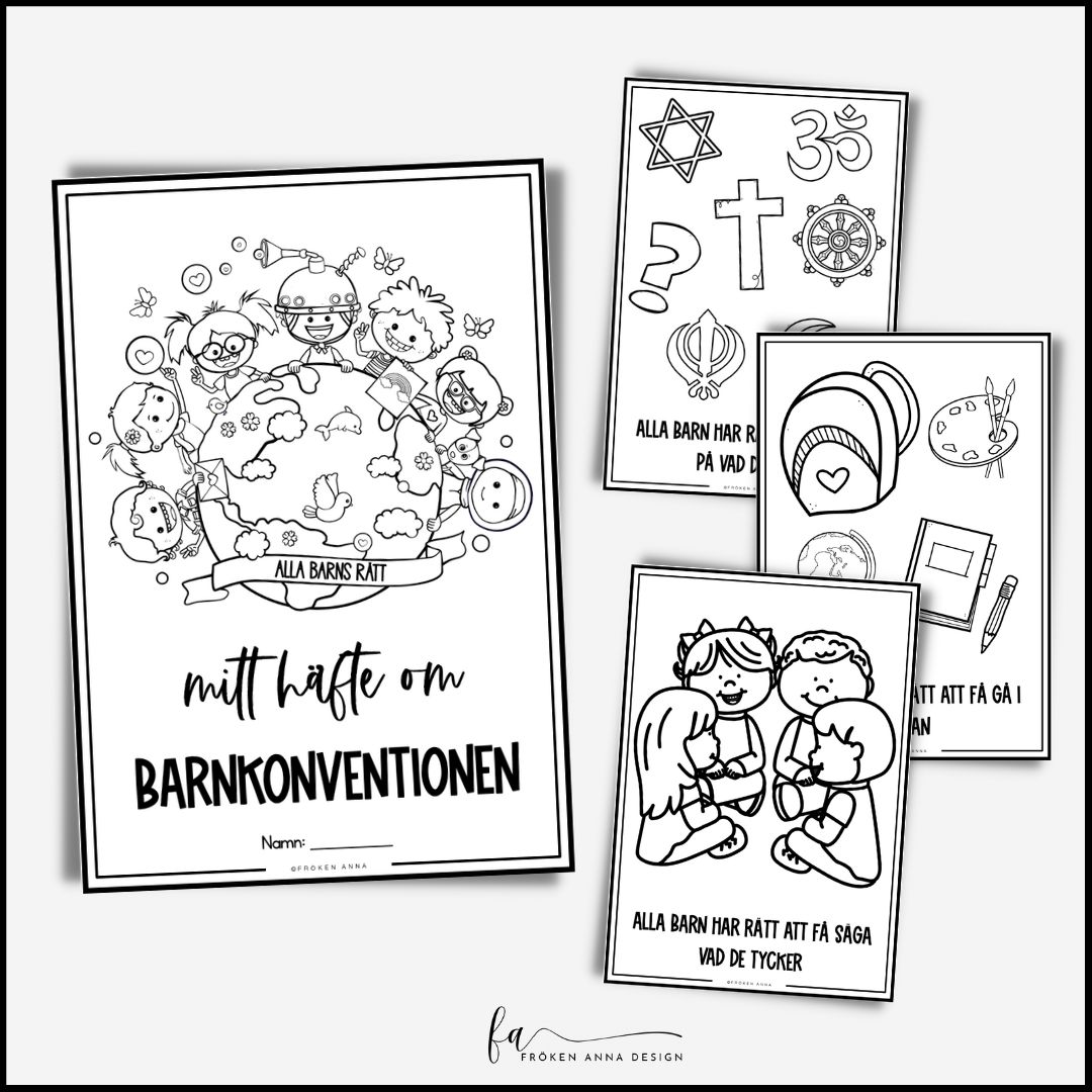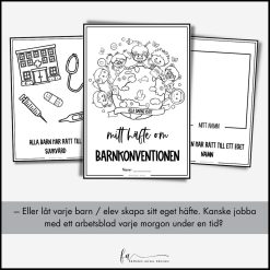 16 artiklar ur barnkonventionen att färglägga och sätta upp som posters, eller att använda som arbetshäfte till varje barn eller elev.