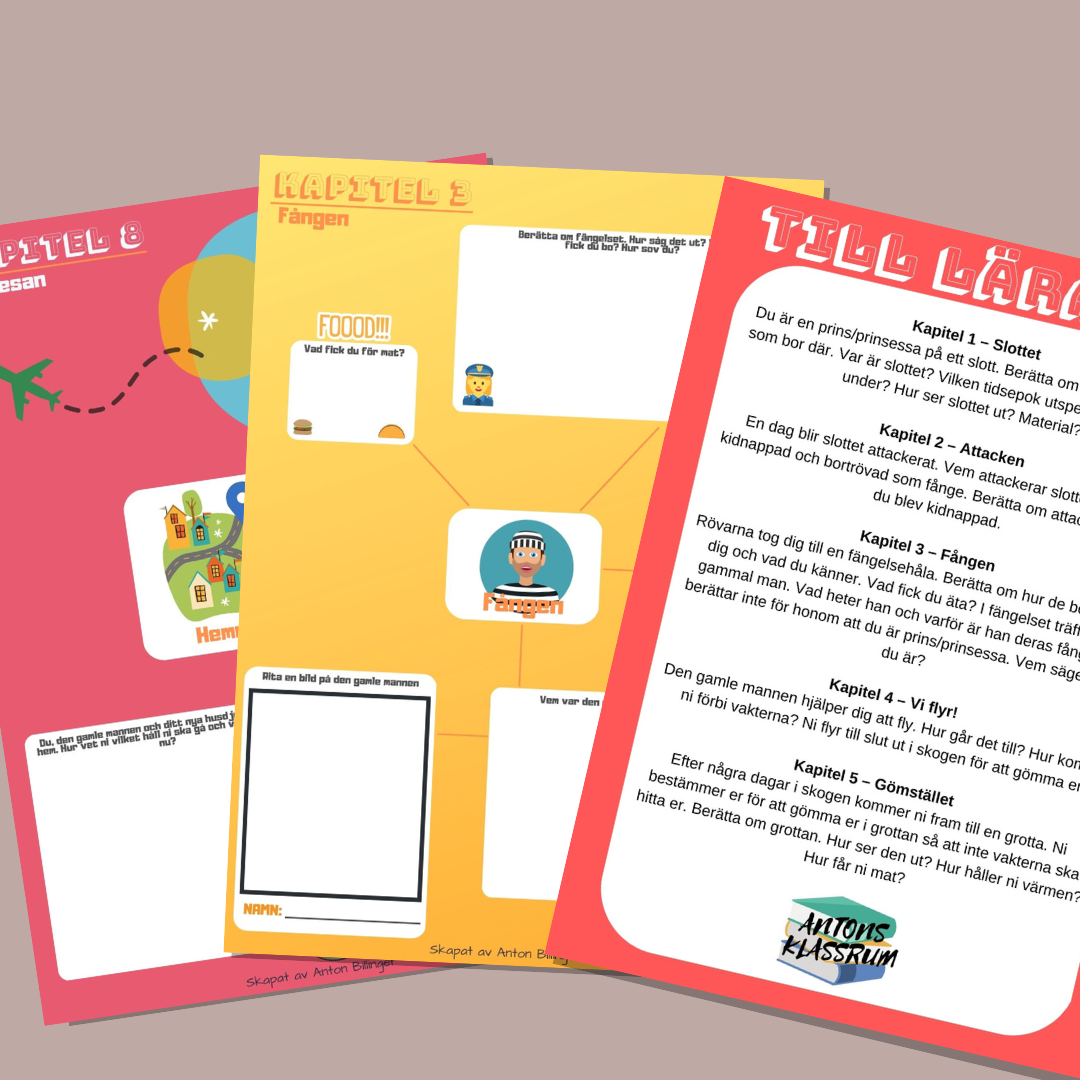 Ett skrivprojekt i Svenska/SvA. Tankekartor med bildstöd till varje kapitel. Följer med en kort sammanfattning av varje kapitel som eleverna ska förhålla sig till när de planerar och skriver sin historia.