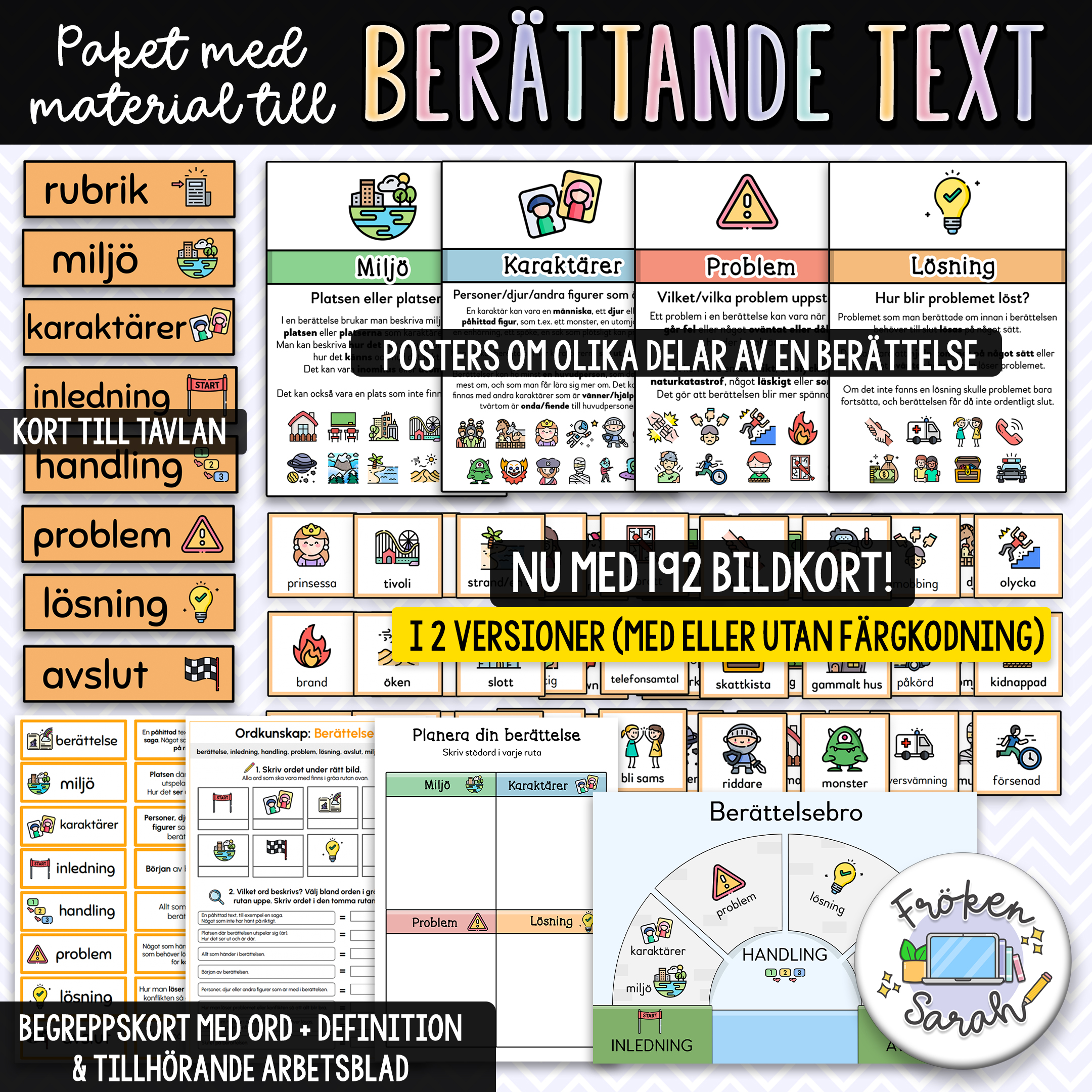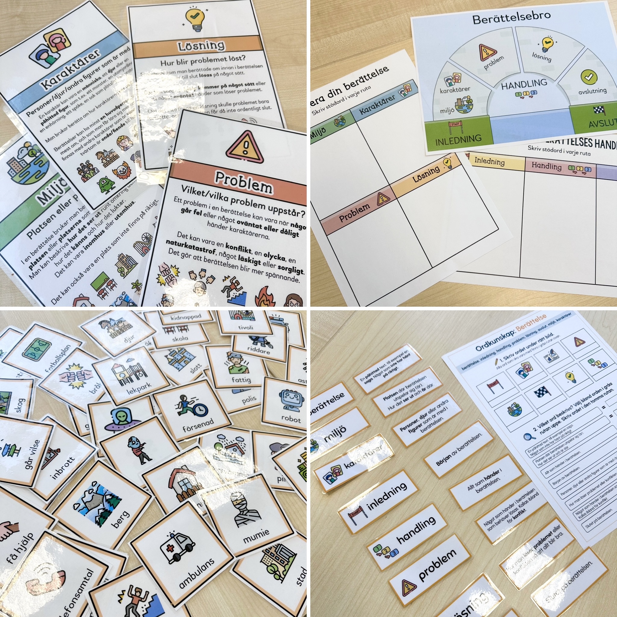 Ett paket med material man kan använda sig av när man arbetar med berättande text. I paketet ingår: