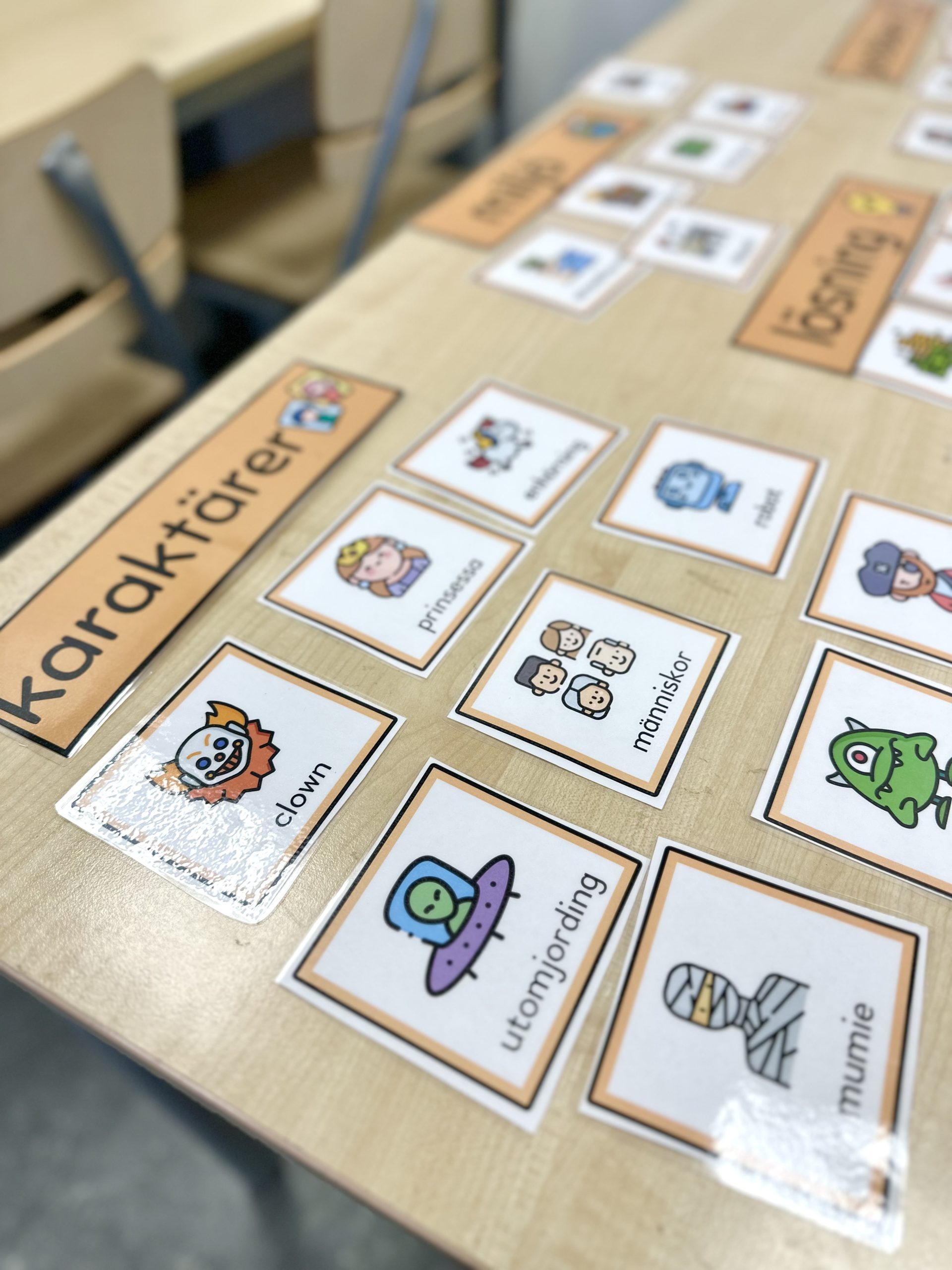192 olika bildkort (som går att sortera in i delar av berättelse, dvs. karaktärer, miljö, problem & lösning).