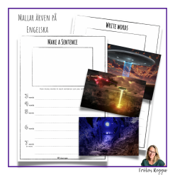24 bilder och 2 mallar på både svenska och engelska. Välj en bild och klistra den i rutan. Skriv meningar till bilden.