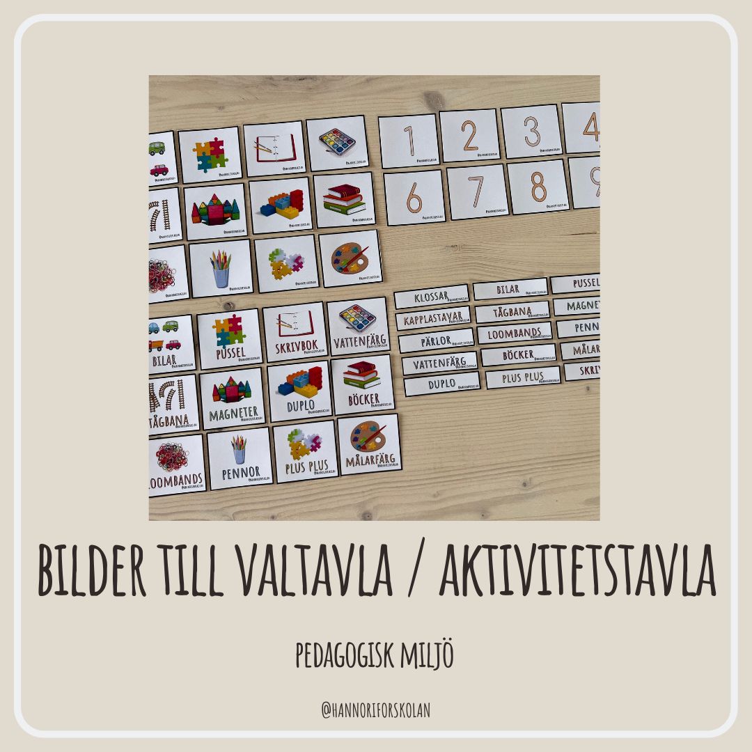 Bilder till valtavla / aktivitetstavla – hos oss finns materialet uppsatt på vår valtavla på avdelningen. På tavlan sätts bilderna upp för att tydliggöra för barnen vad de ska göra och hur många de ska vara i rummet.