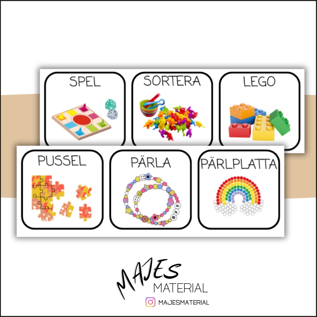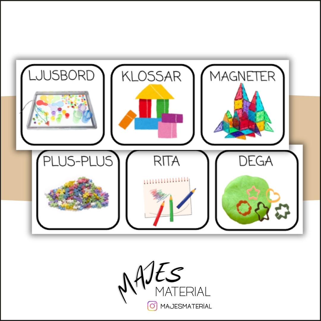 Bildstöd att använda till en aktivitetstavla/valtavla på förskolan där barnen kan se/välja vad de vill göra.