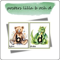 Bildstöd med lilla b och d i tre utföranden, se produktbilder. De finns även i samma utföranden men i A4-format, en bild per sida.